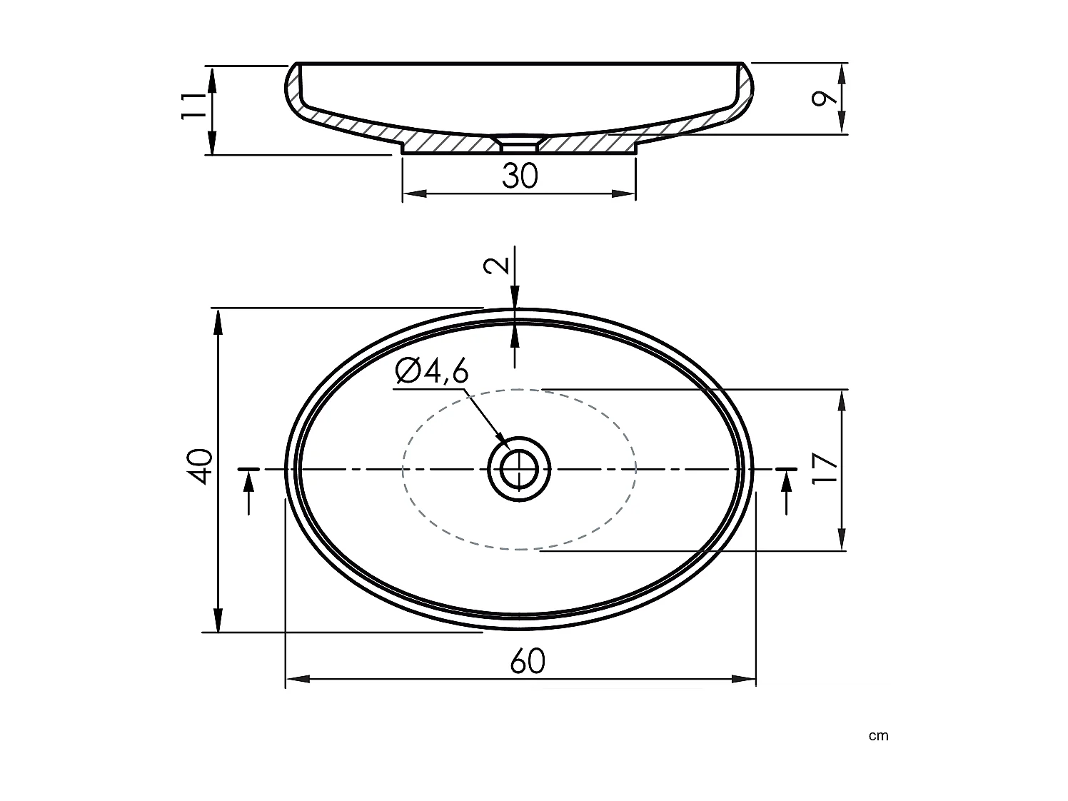 Ovales Aufsatzwaschbecken aus Sanydur ESLIDA 60 x 40 cm