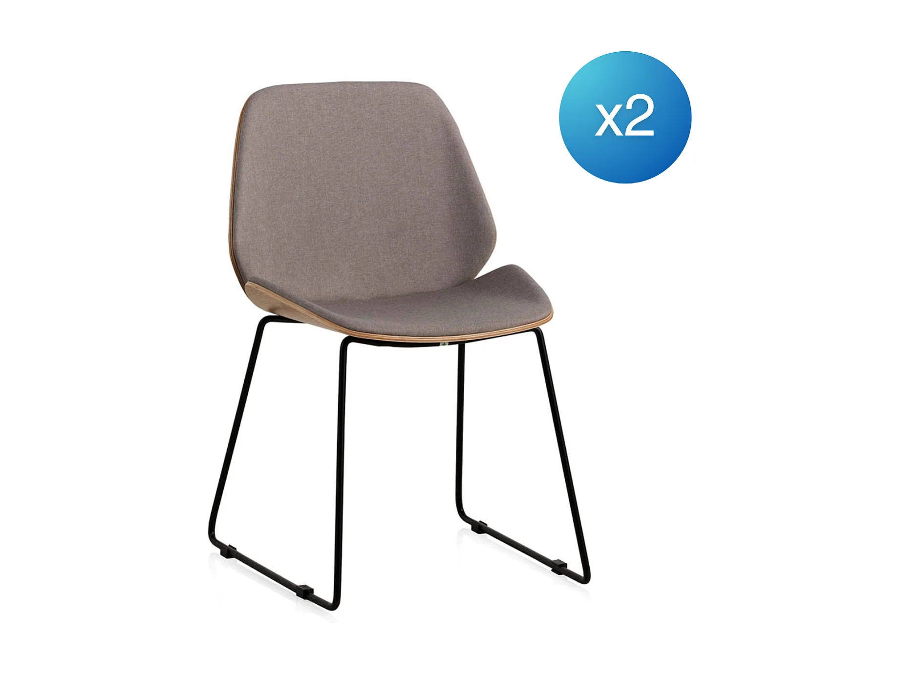 Packung mit 2 gepolsterten Holzstühlen mit schwarzen Metallbeinen