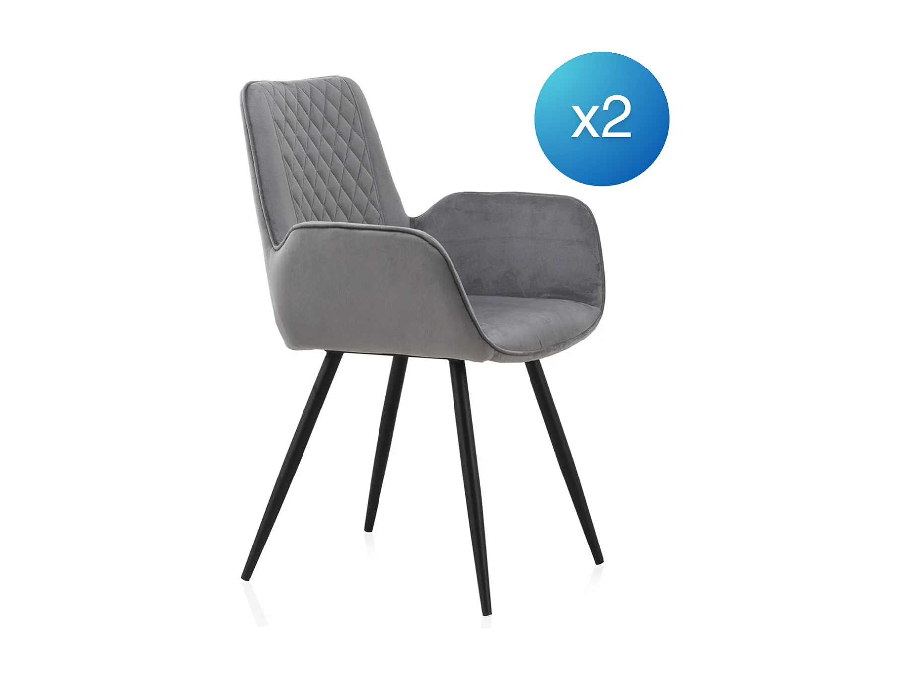 Packung mit 2 grauen Samtpolstersesseln mit schwarzen Metallbeinen