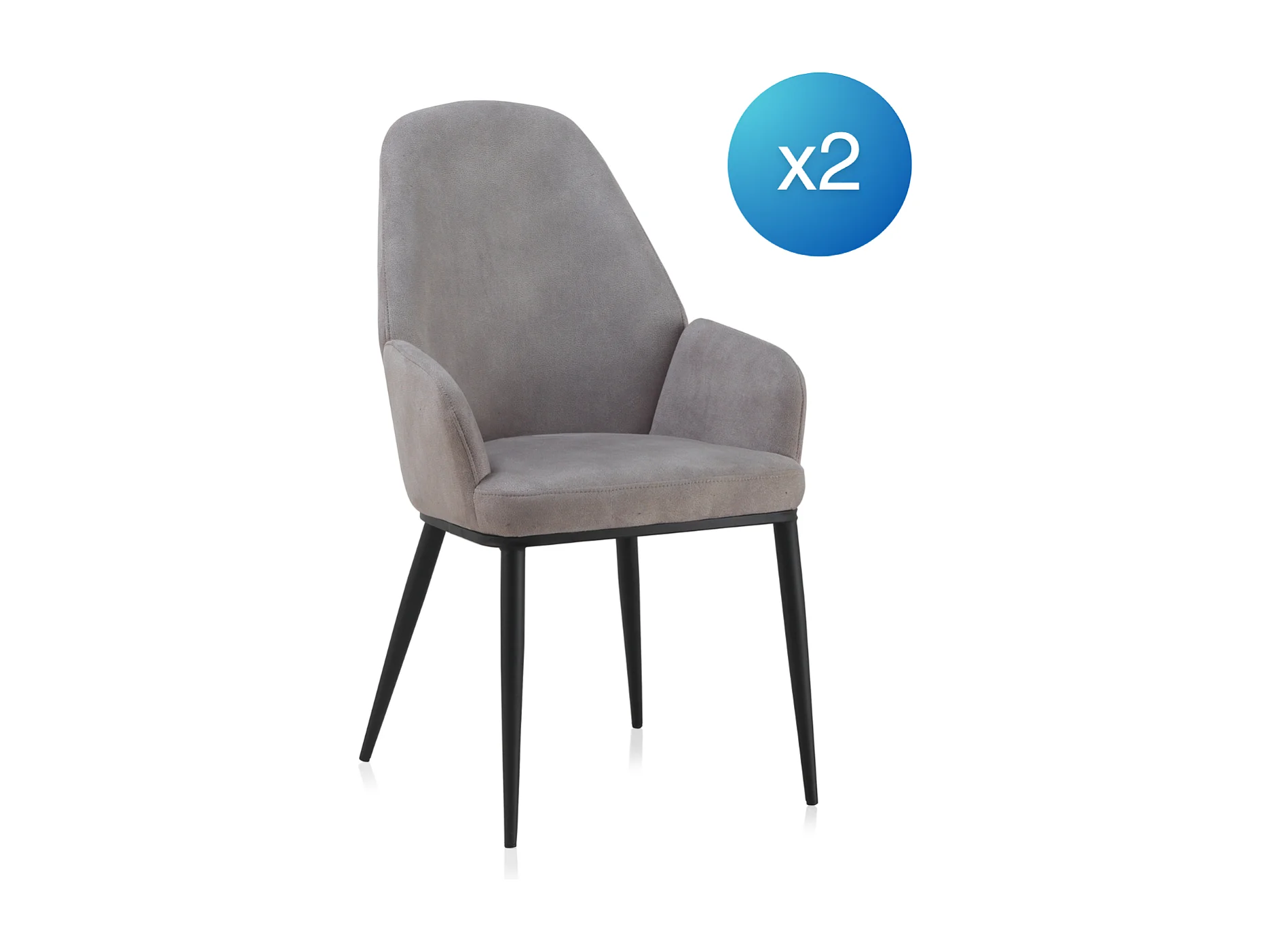 Packung mit 2 hellgrauen gepolsterten Sesseln mit schwarzen Metallbeinen