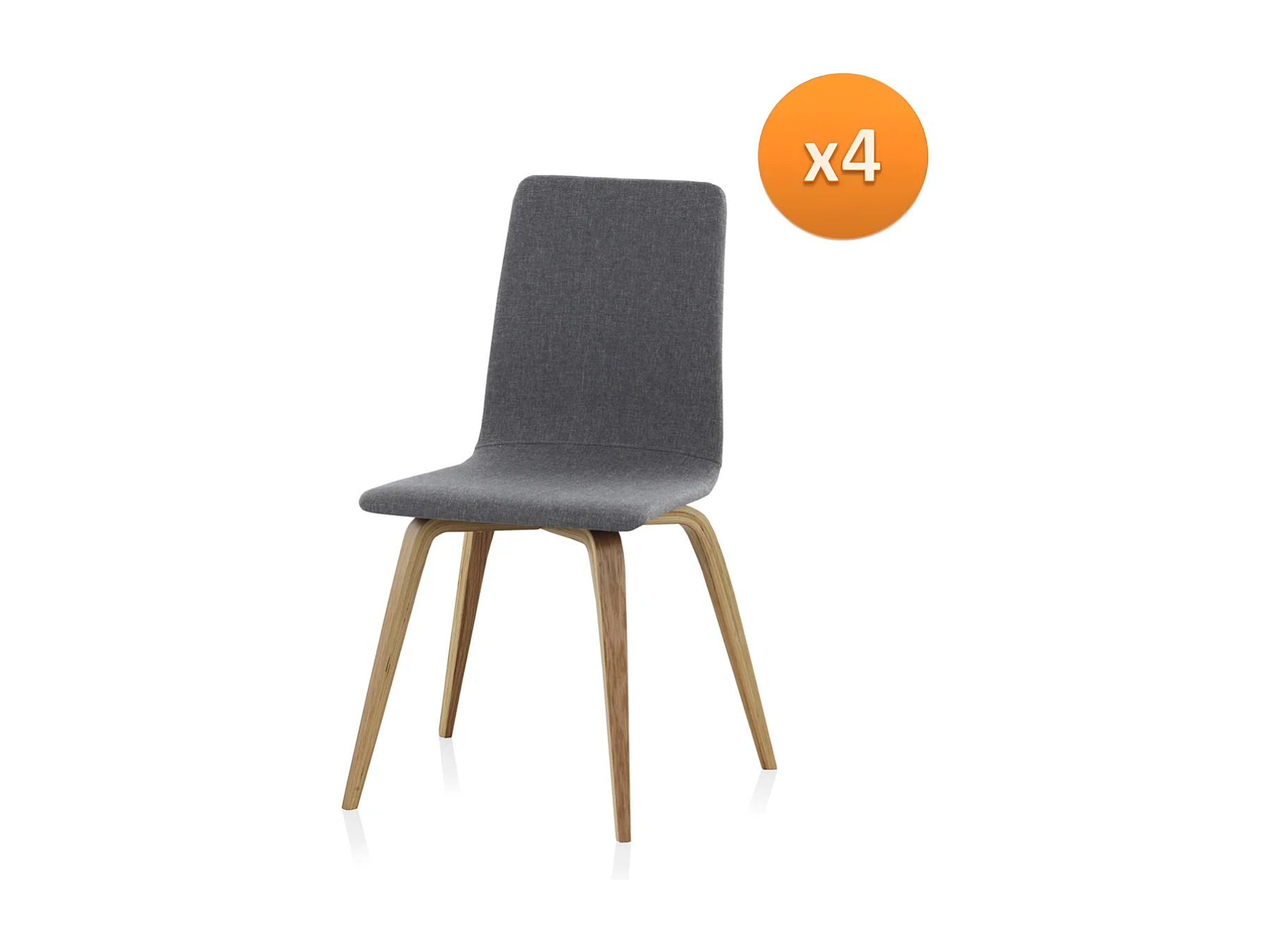 Packung mit 4 Holzstühlen, grau gepolstert