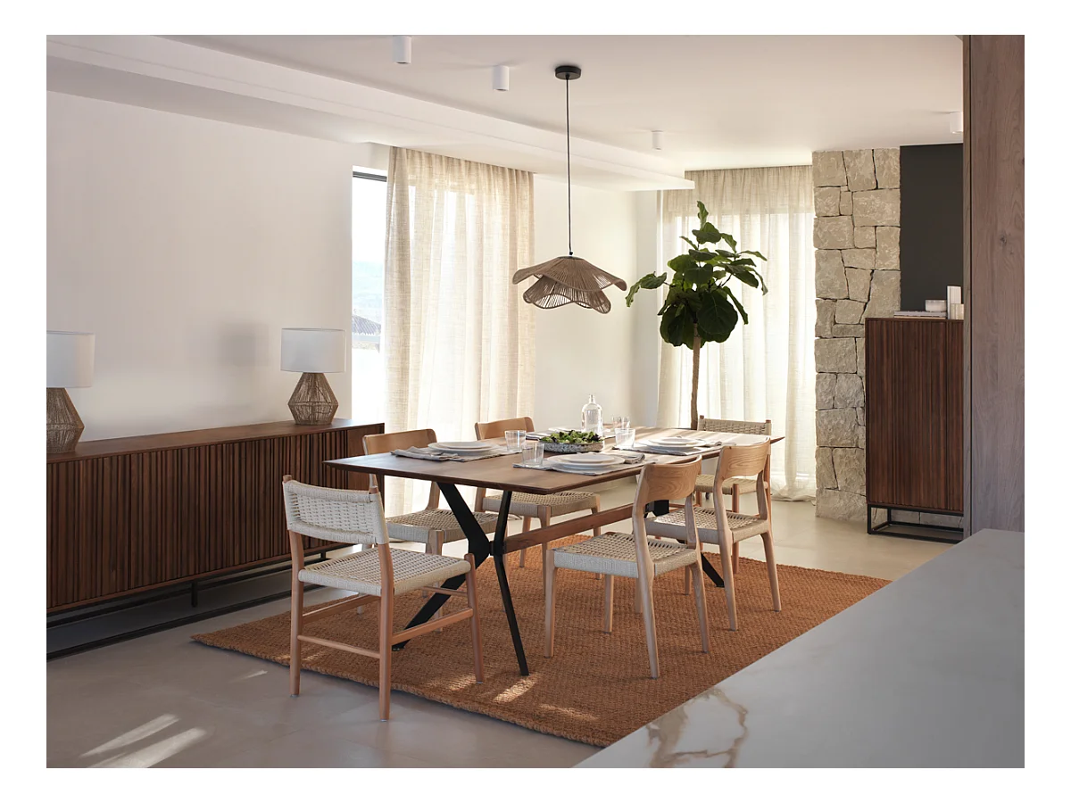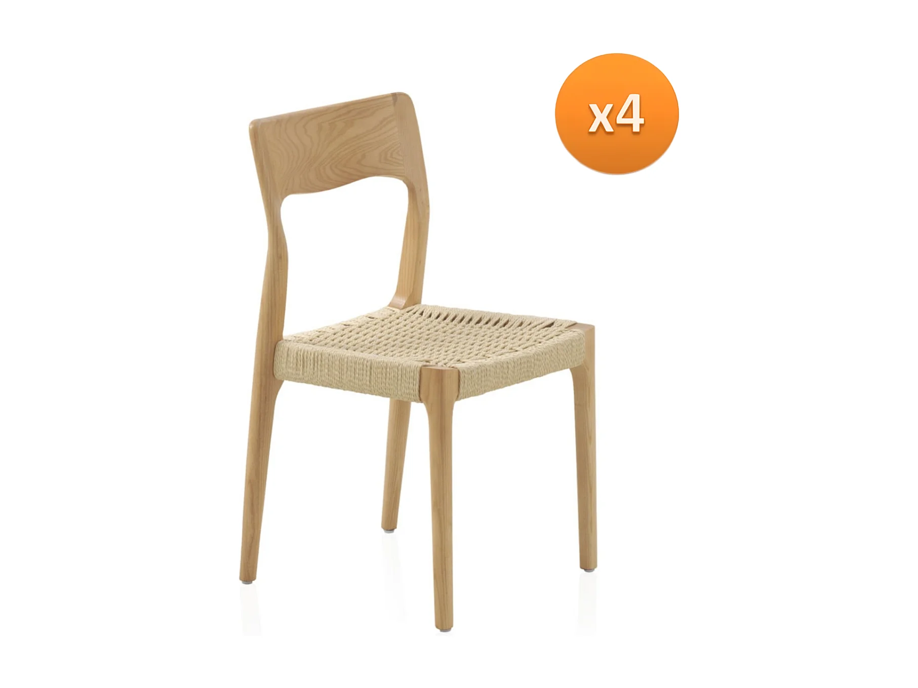 Packung mit 4 Stühlen aus Eschenholz mit geflochtener Sitzfläche