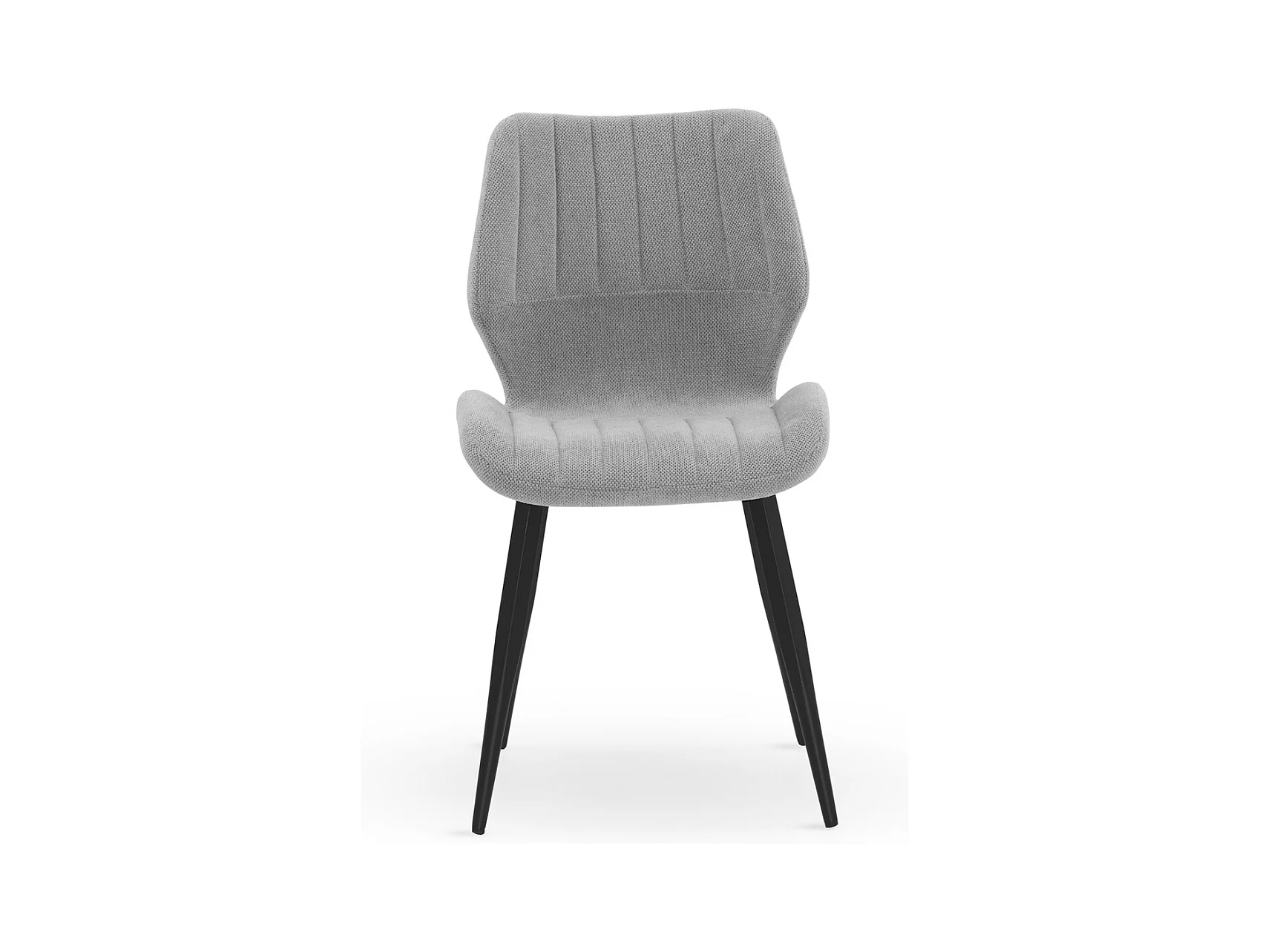Packung mit 4 Stühlen, gepolstert mit fossiler Chenille und schwarzen Metallbeinen