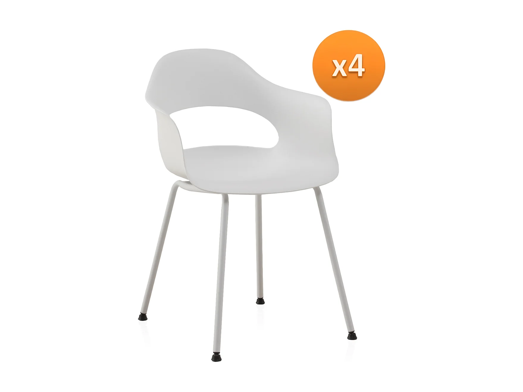 Packung mit 4 weißen PP-Sesseln mit Metallbeinen