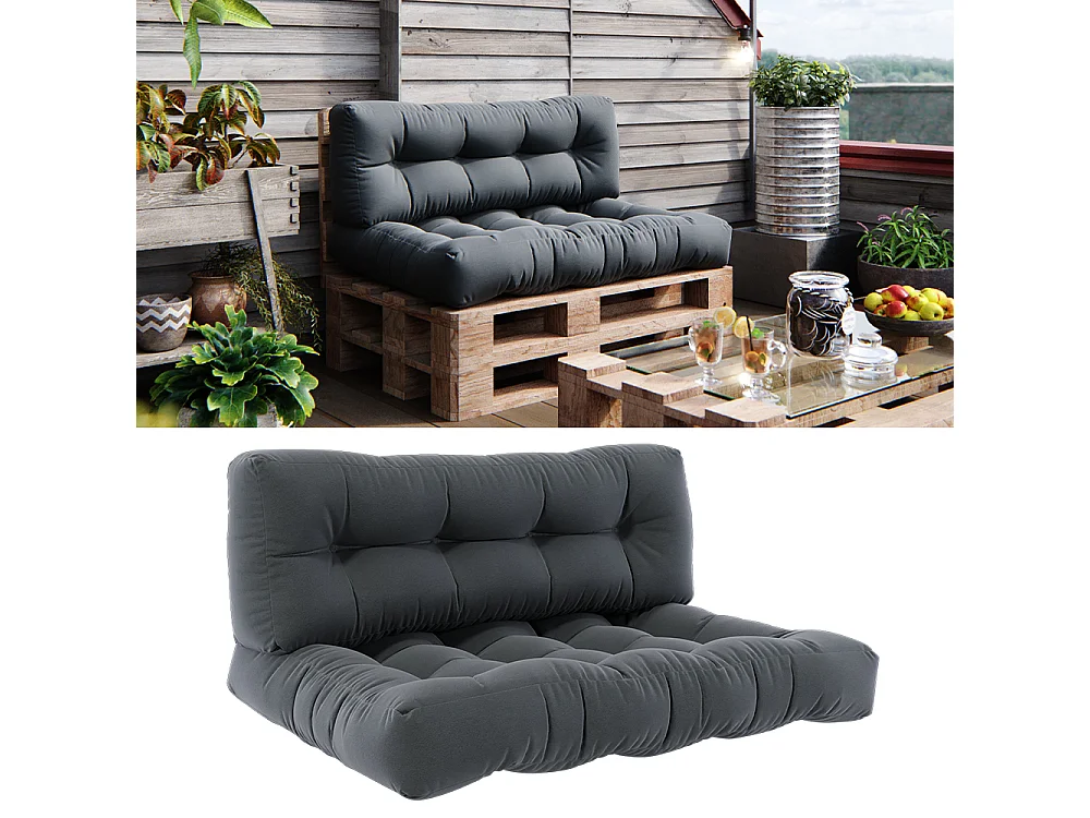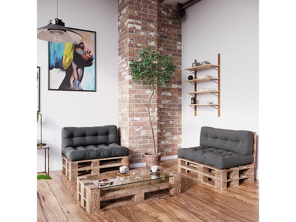 Palettenkissen Set anthrazit 120x15x80 flocken