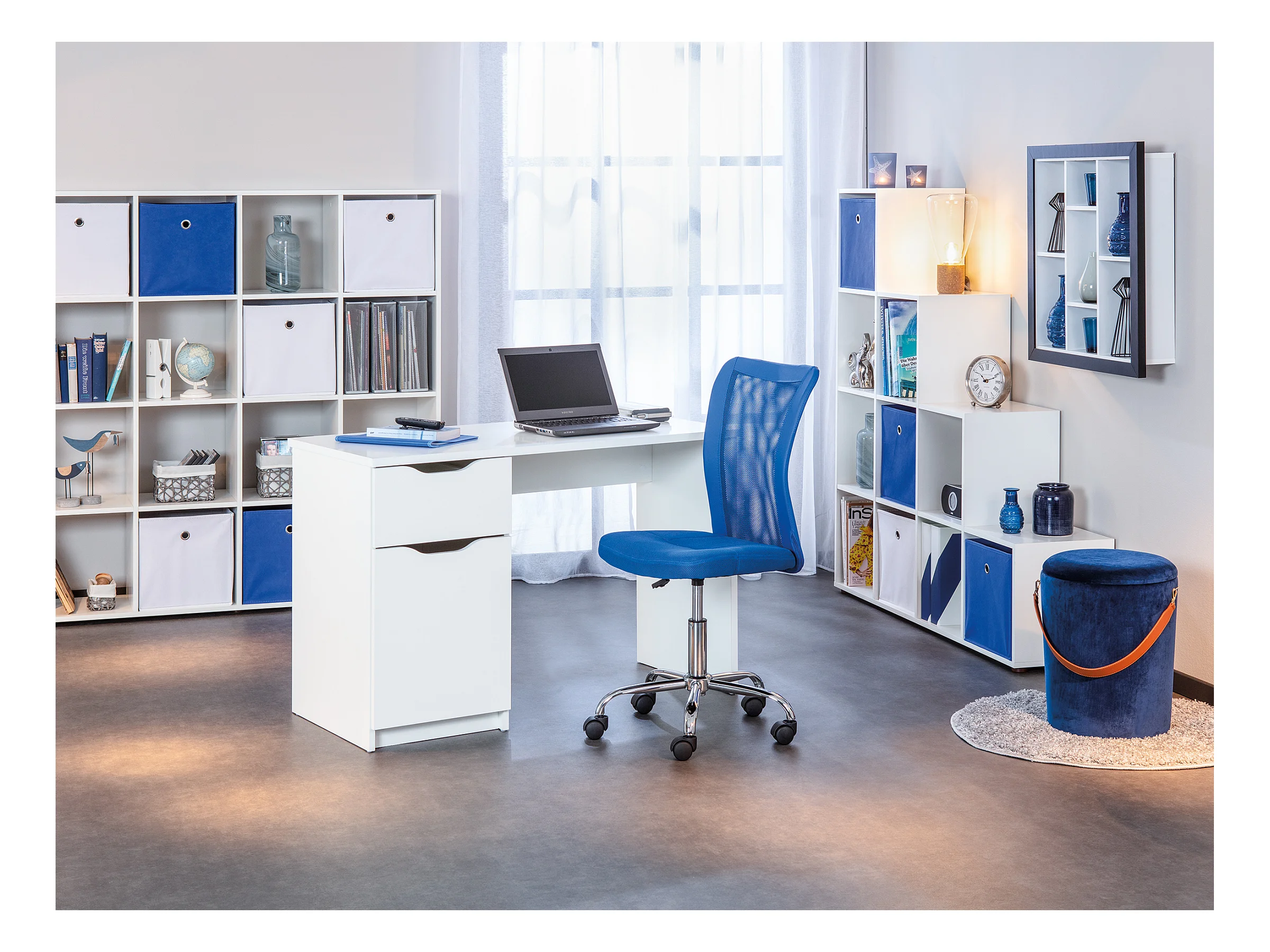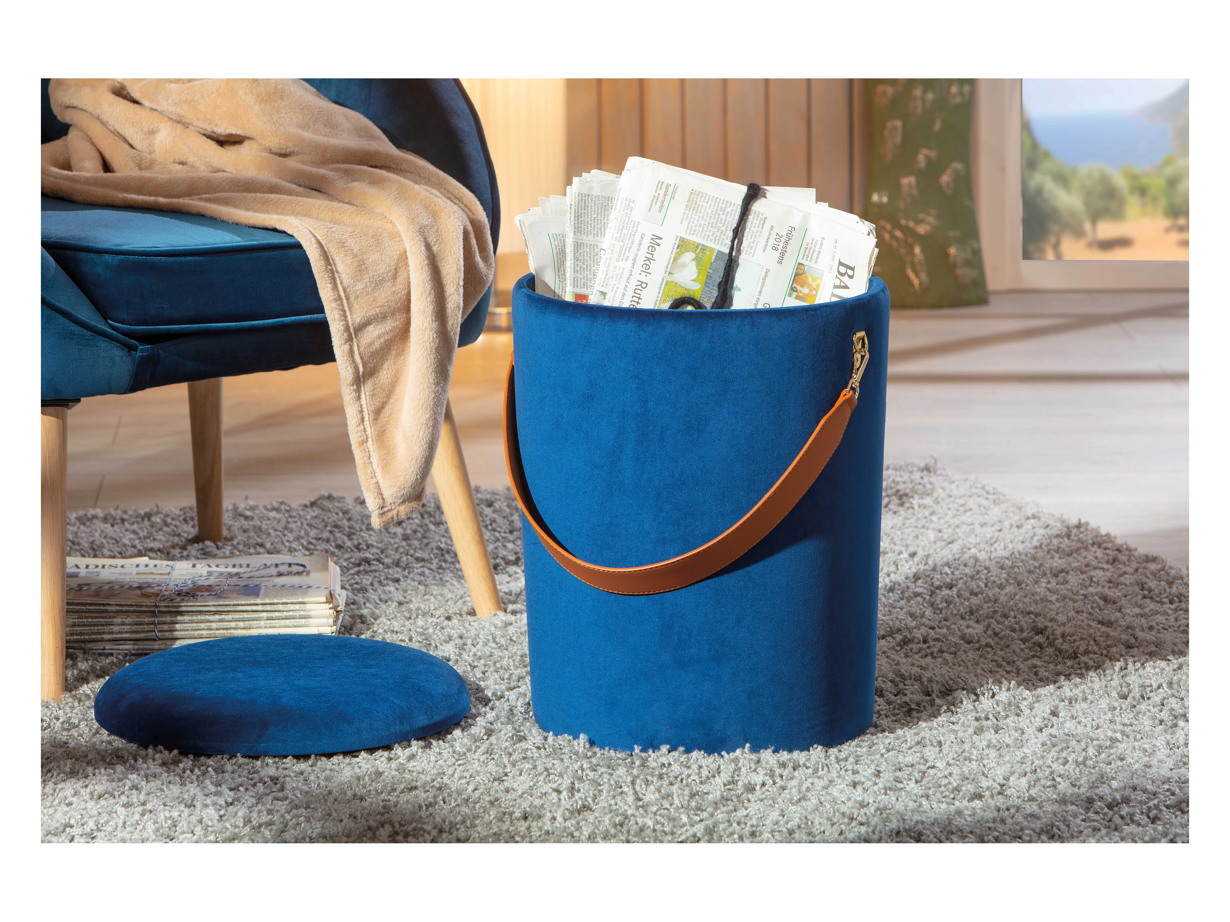 Pampurs Fusshocker, Hocker mit Aufbewahrung blau und braun.
