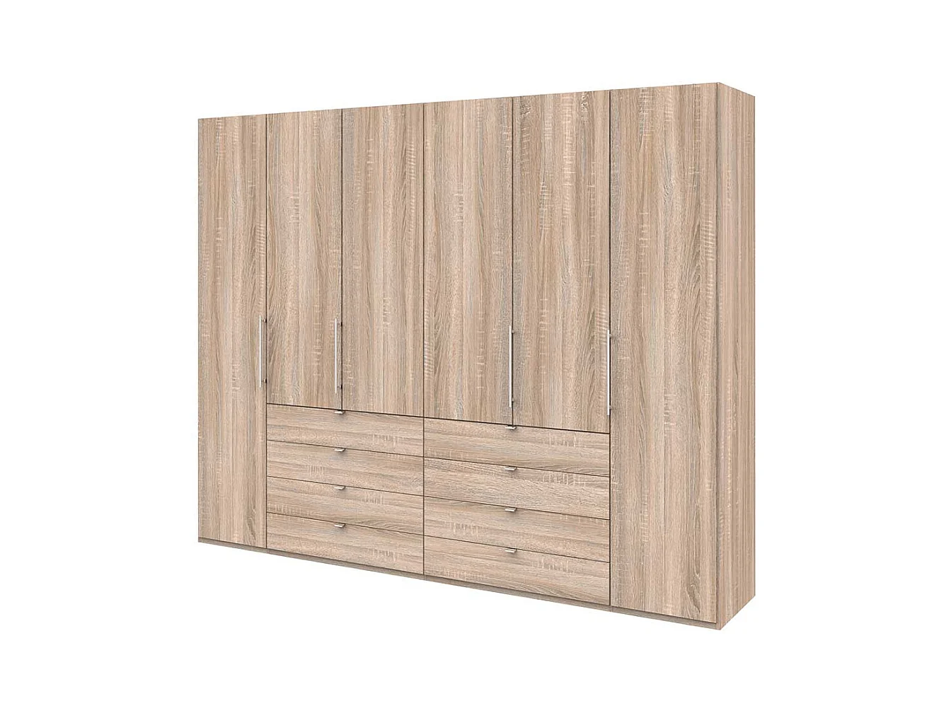 Panorama Falttürenschrank in Eiche Sägerau acht Schubladen