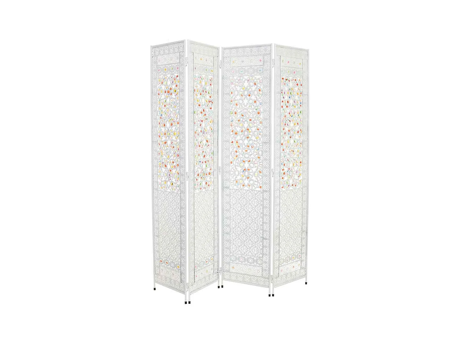 Paravent aus weißem Metall und farbigem Acrylglas 160x3x172