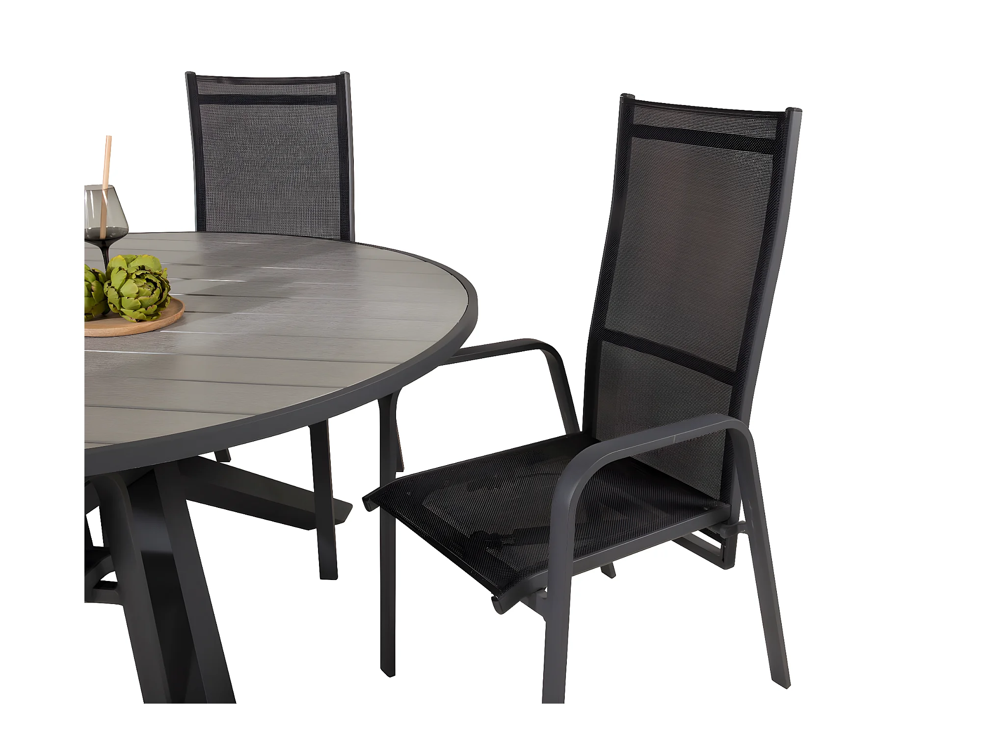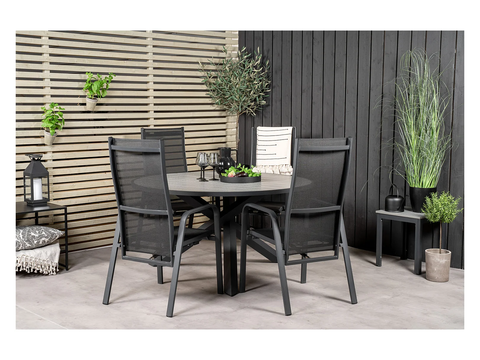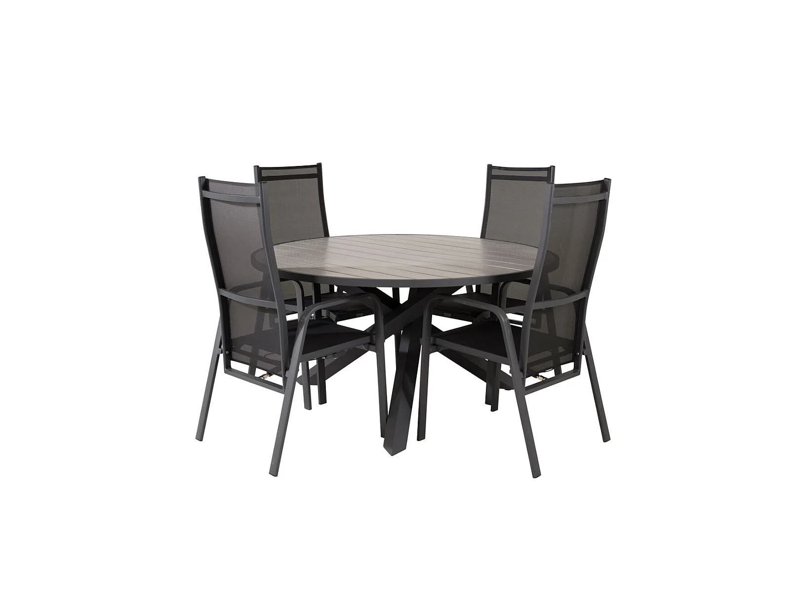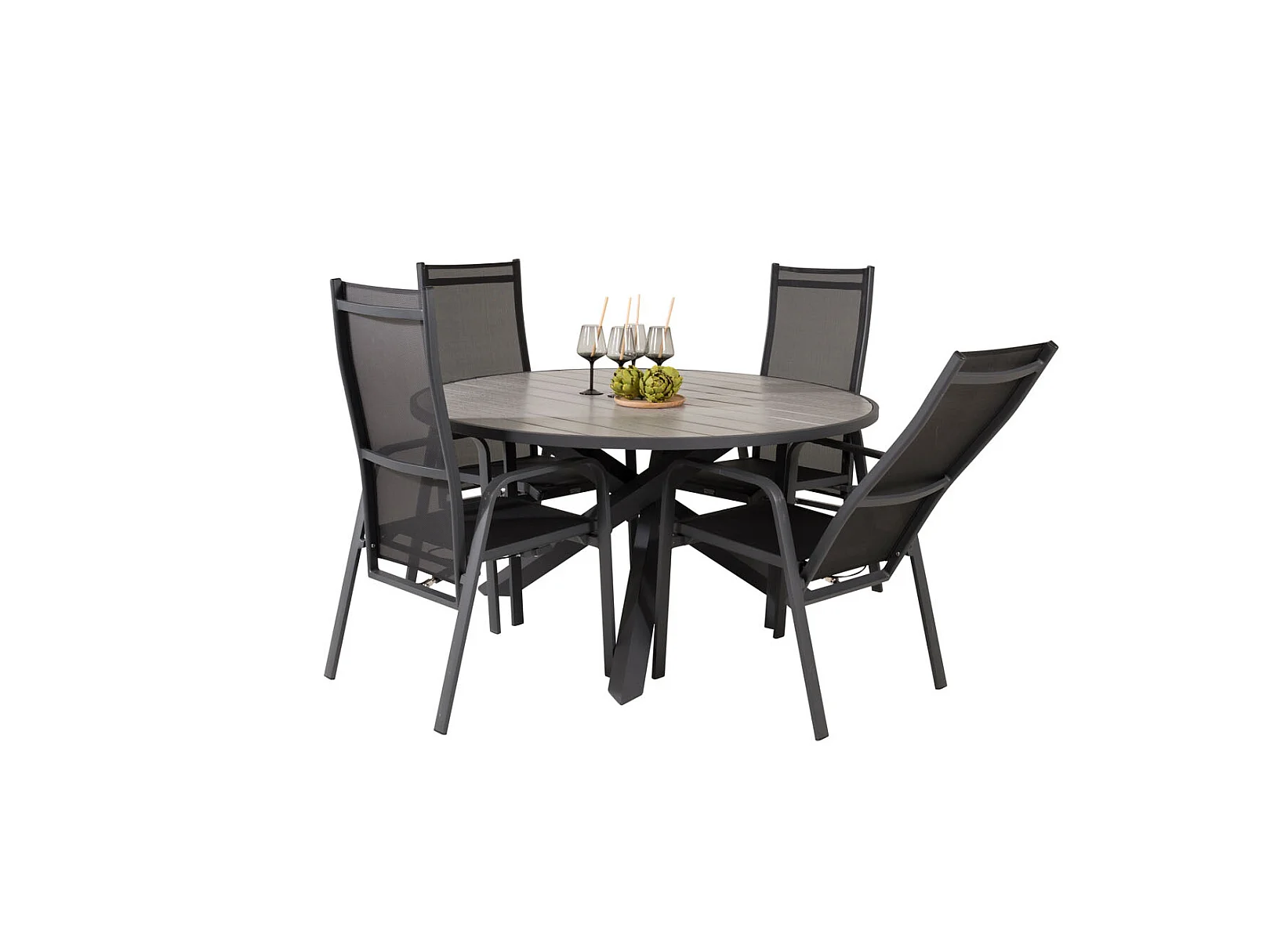 Parma Gartenset Tisch Ø140cm und 4 Stühle Copacabana schwarz, grau.