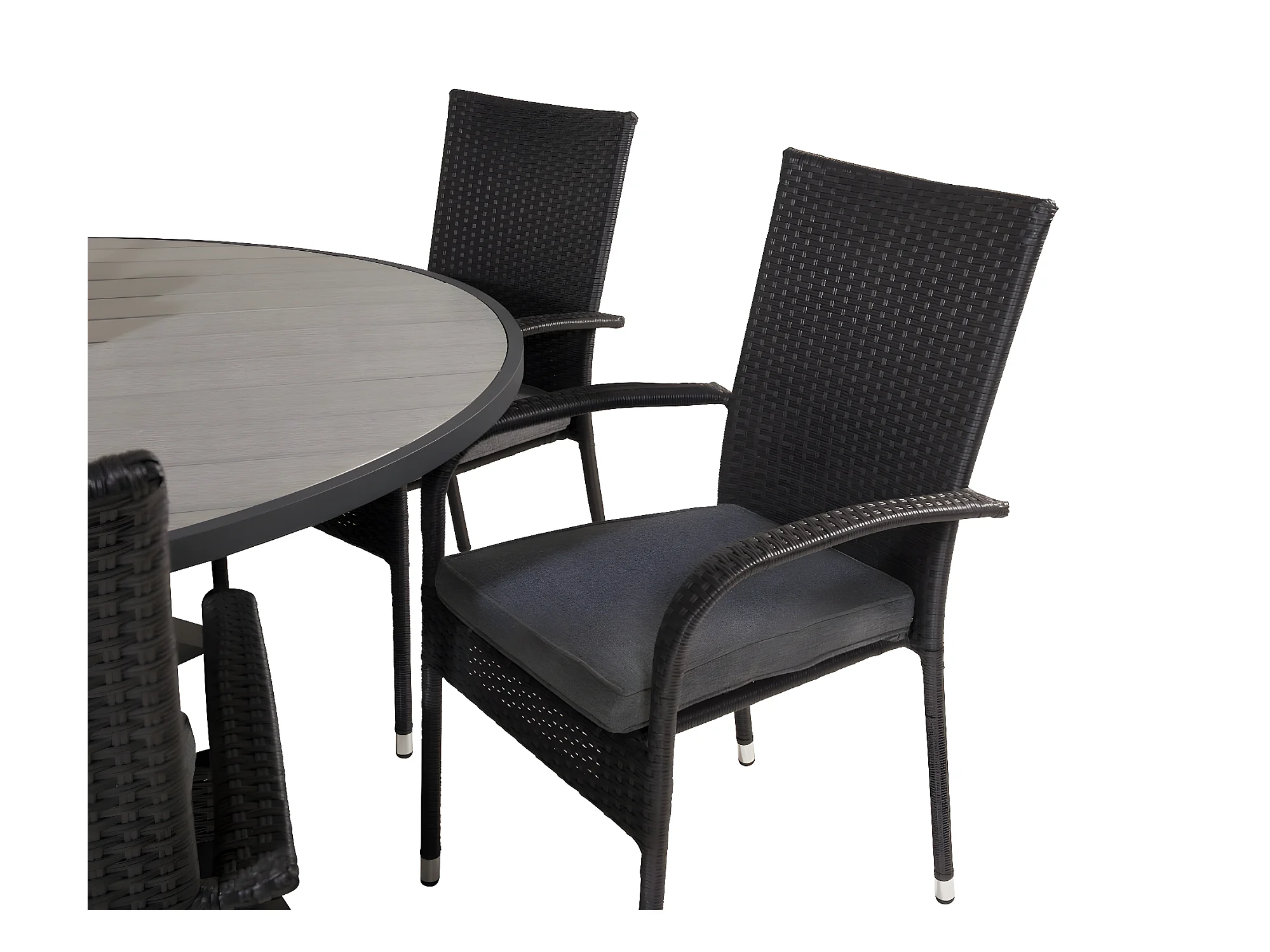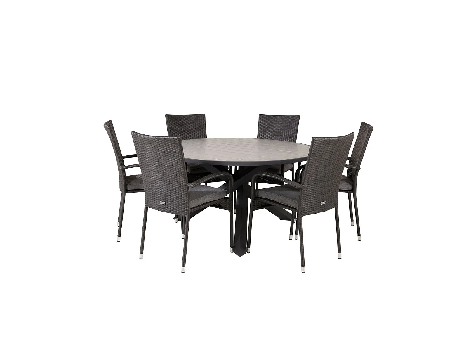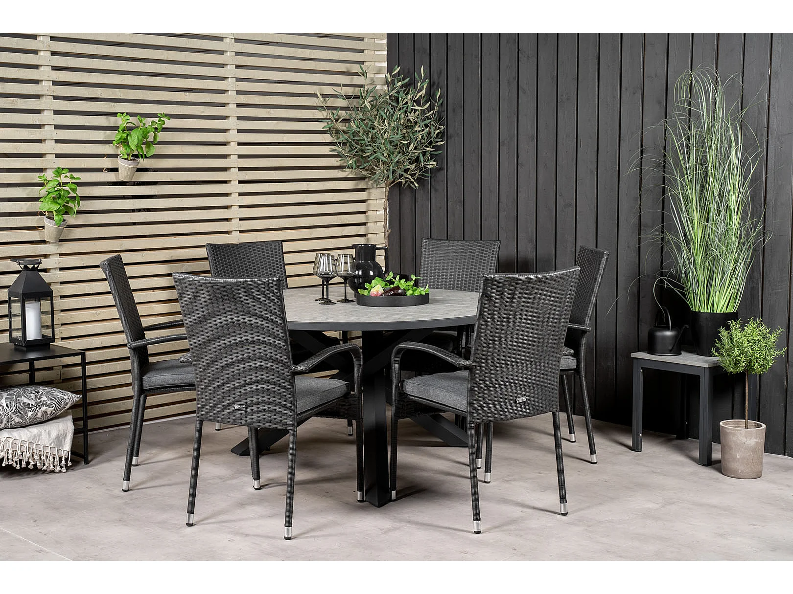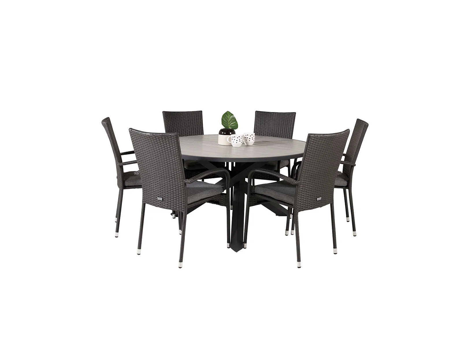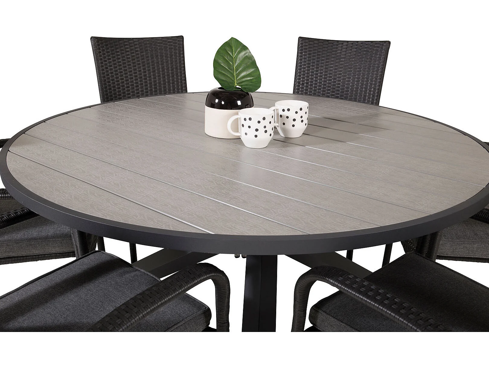 Parma Gartenset Tisch Ø140cm und 6 Stühle Anna schwarz, grau.