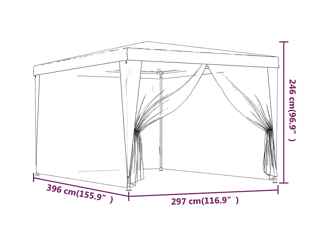 Partyzelt mit 4 Mesh-Seitenwänden Grün 3x4 m HDPE