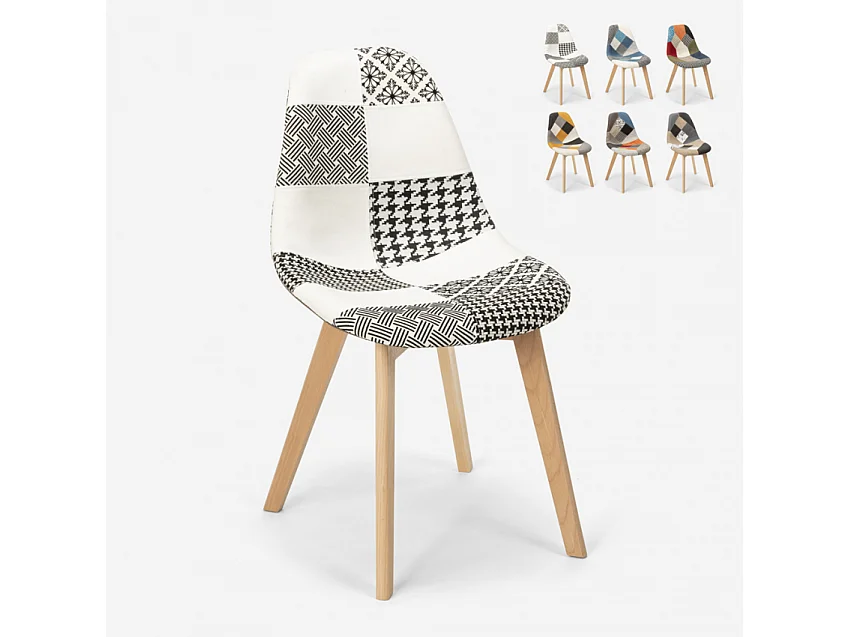Patchwork Stuhl aus Holz und Stoff für Küche Bar Restaurant Robin - Patchwork 6