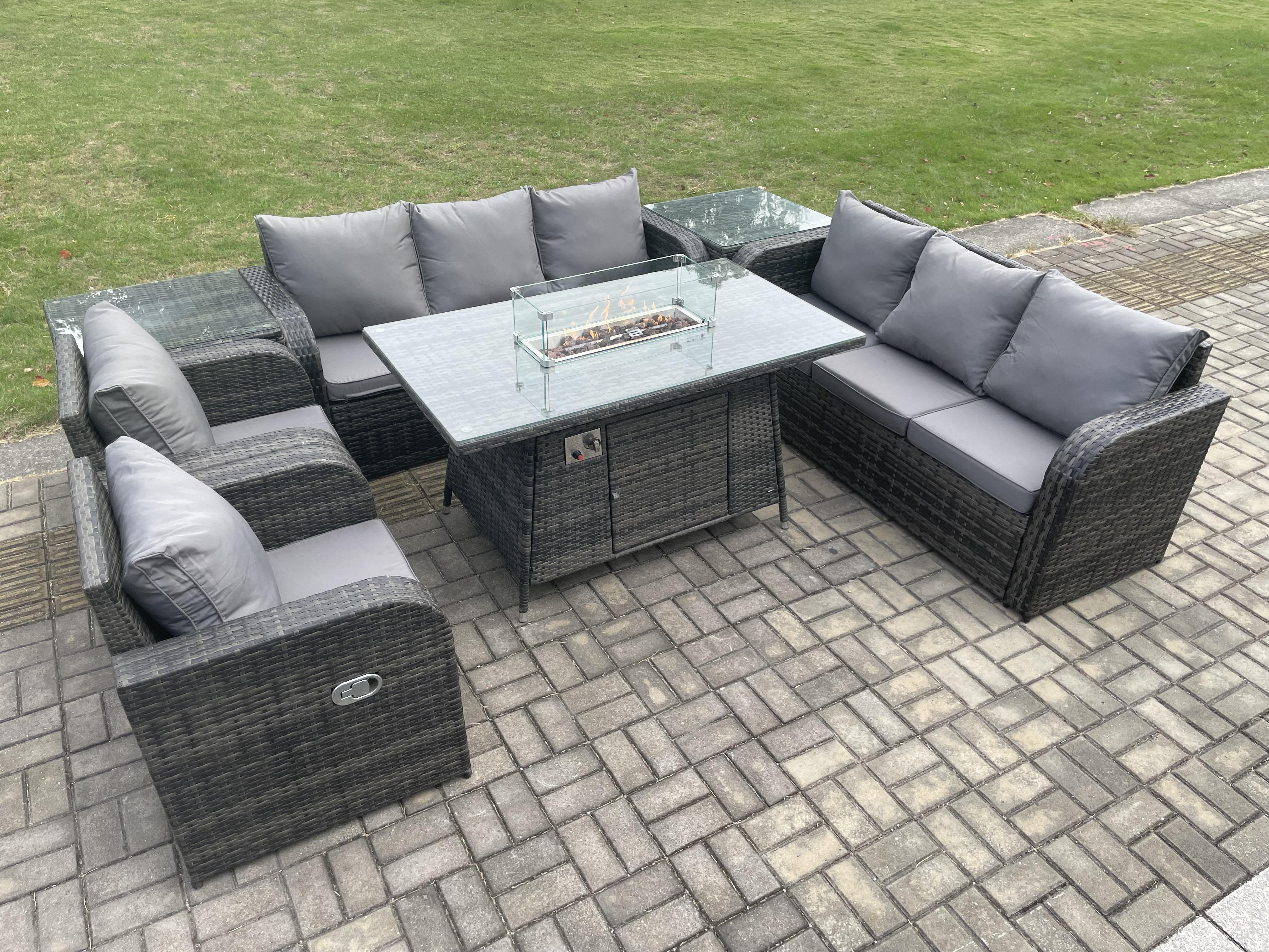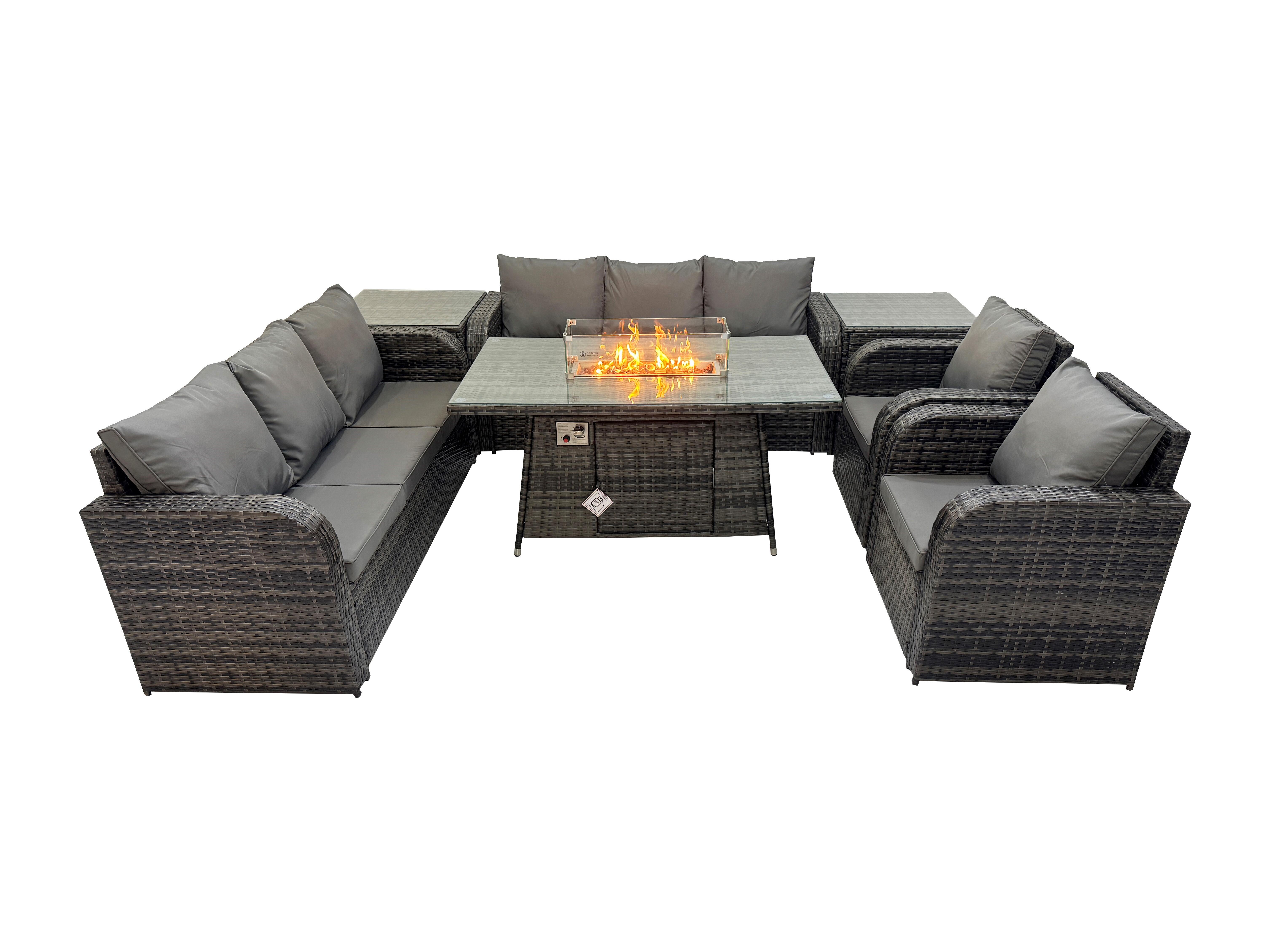 Patio Polyrattan Gartenmöbel Set mit Gasfeuerstelle Esstisch,Sessel und Beistelltisch 8-Sitzer