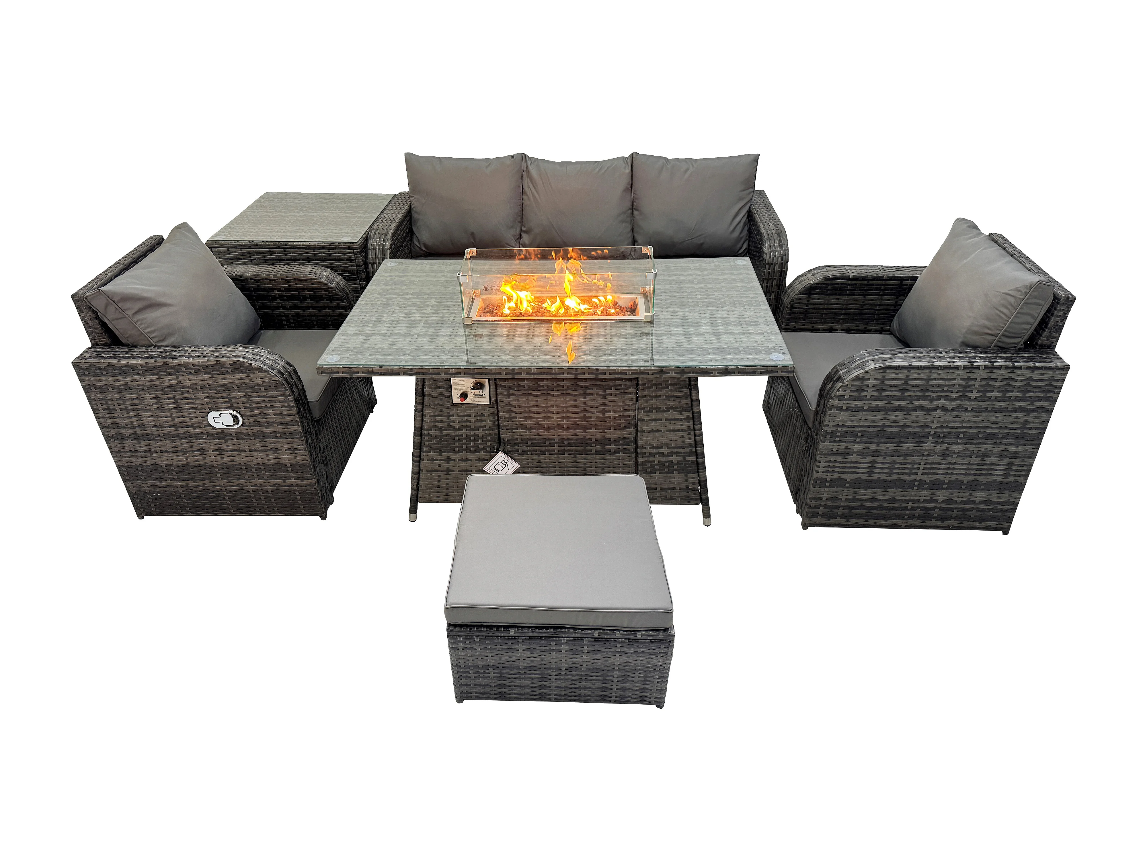 Patio Polyrattan Gartenmöbelset Gasfeuerstelle Esstischmit Sofa Beistelltisch Fußhocker