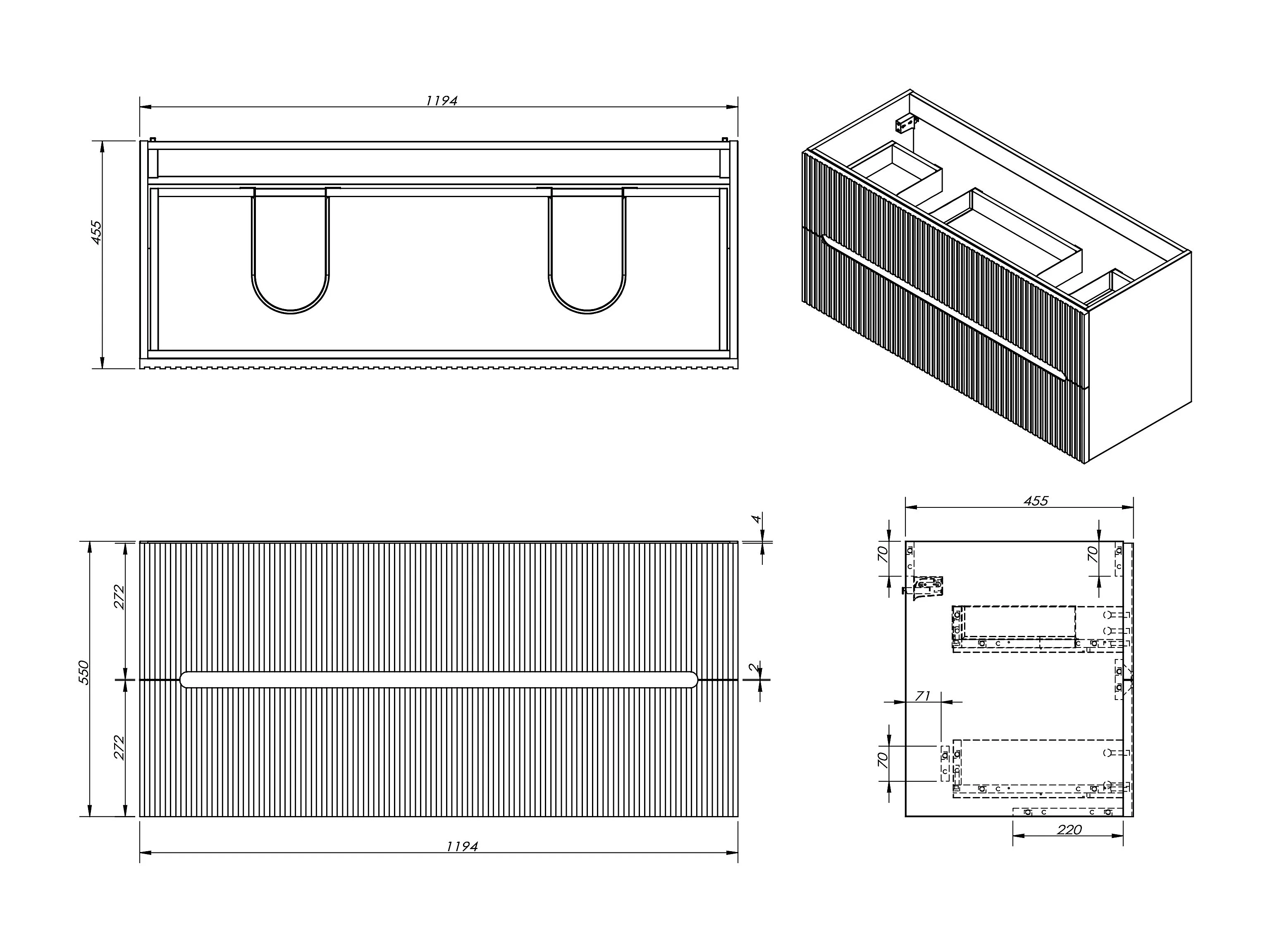 Waschbeckenunterschrank hängend - 120 cm - Grau gerippt - PAVANI
