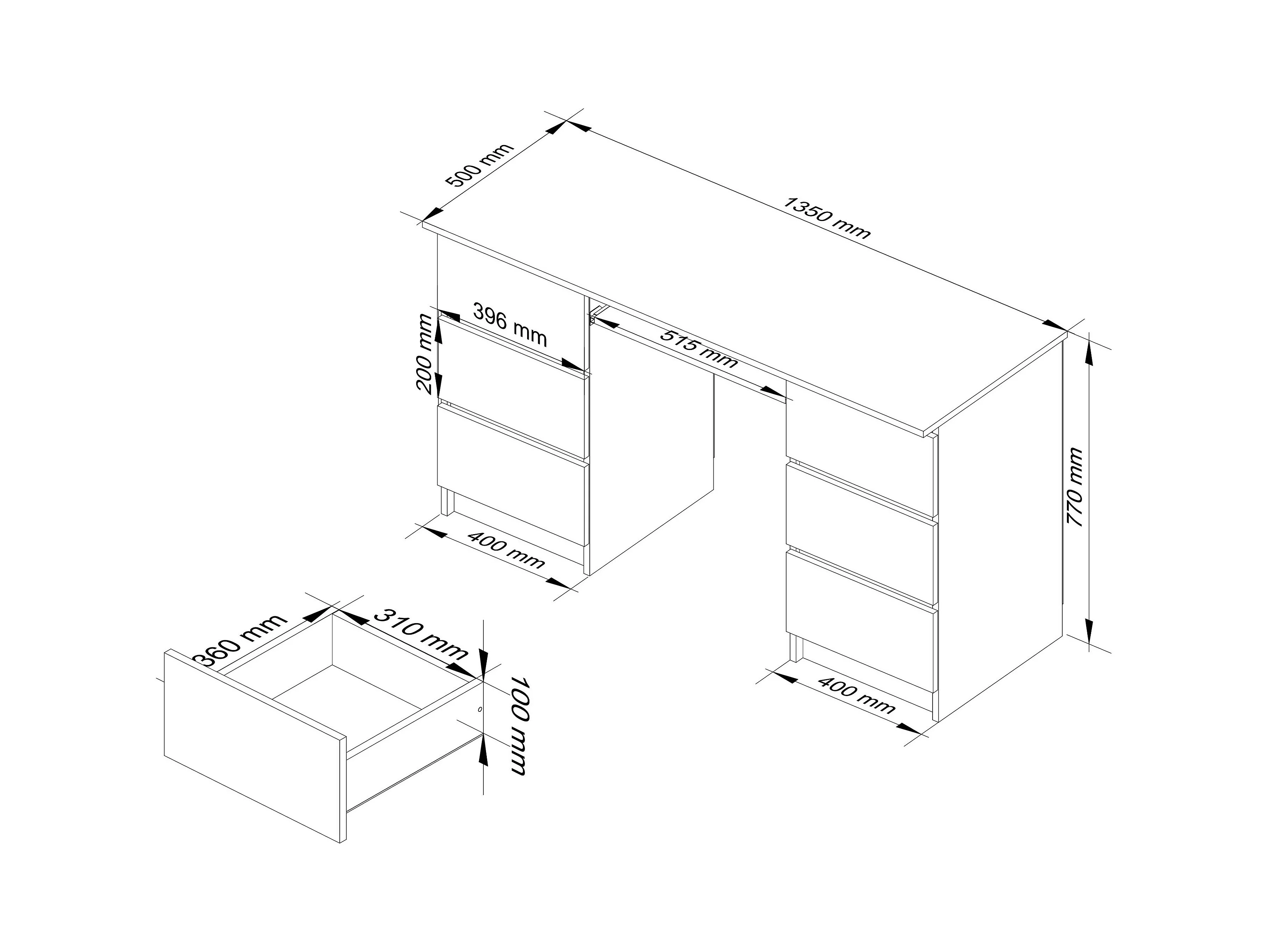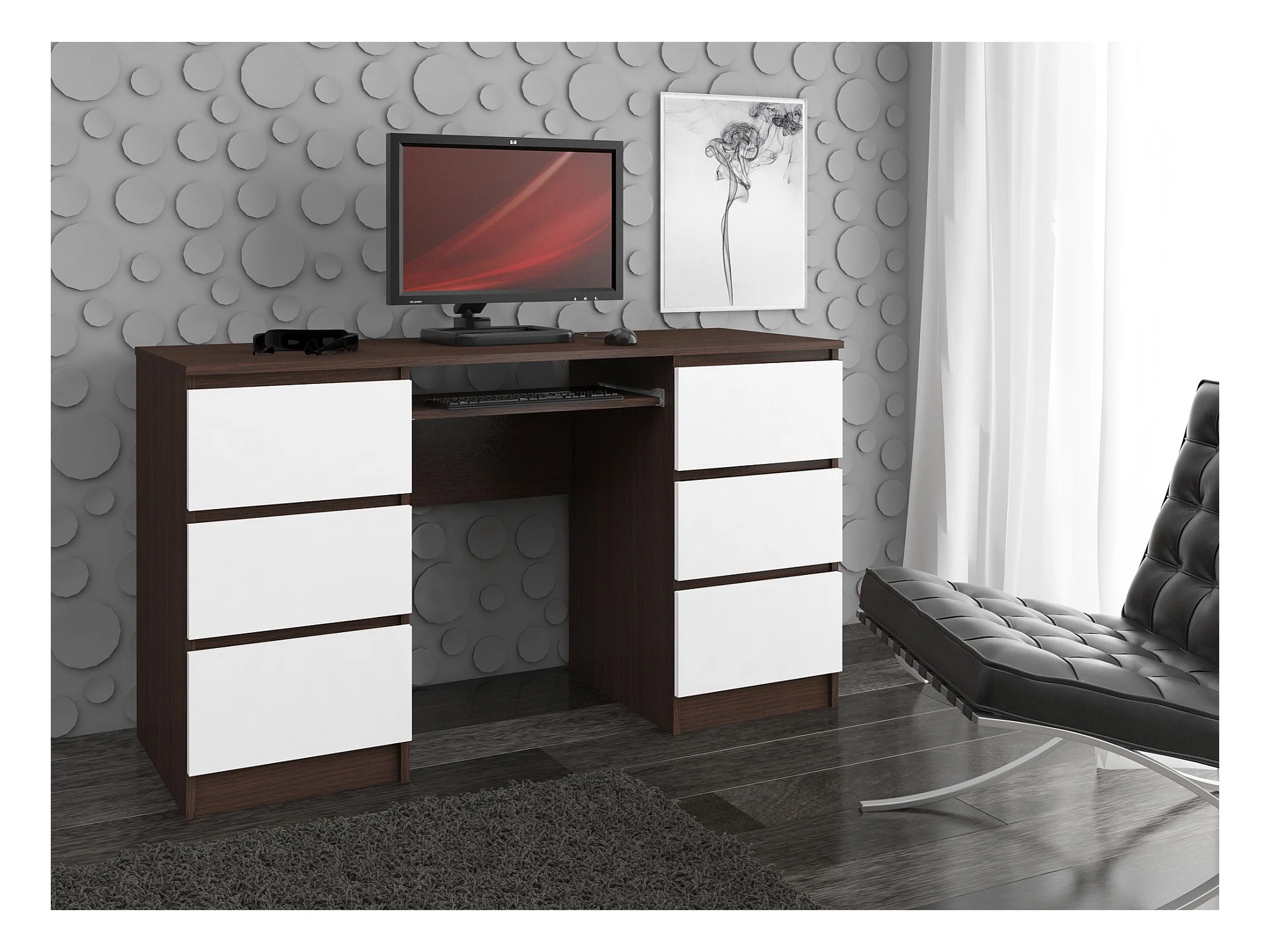 PC-Schreibtisch AKORD A11 in der Farbe Wenge mit 6 Schubladen Front Weiß B135 x H77 x T50 cm
