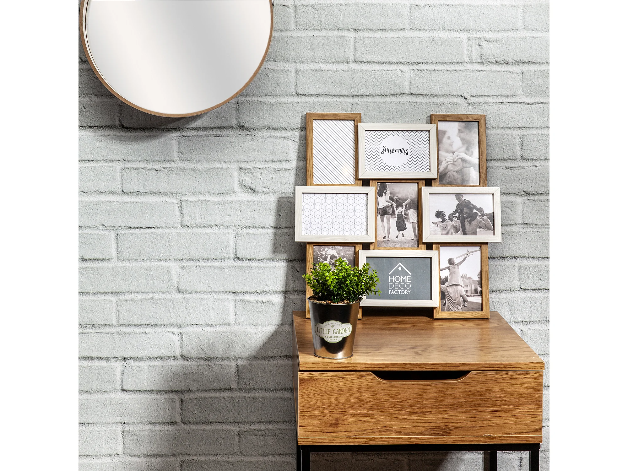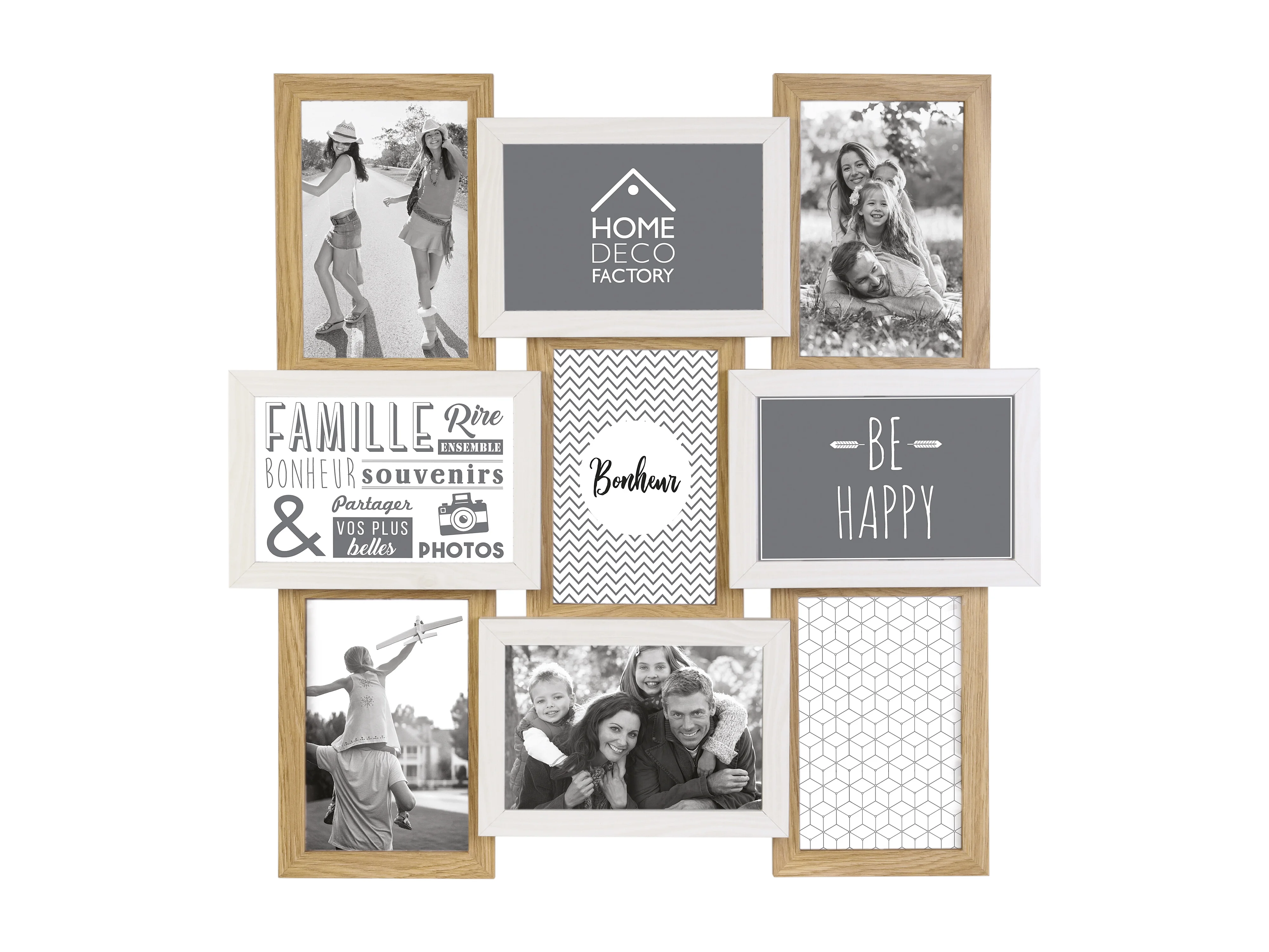 Holzfarbener und weißer Mehrfachfotorahmen 9 Foto 10 x 15 cm "Family"