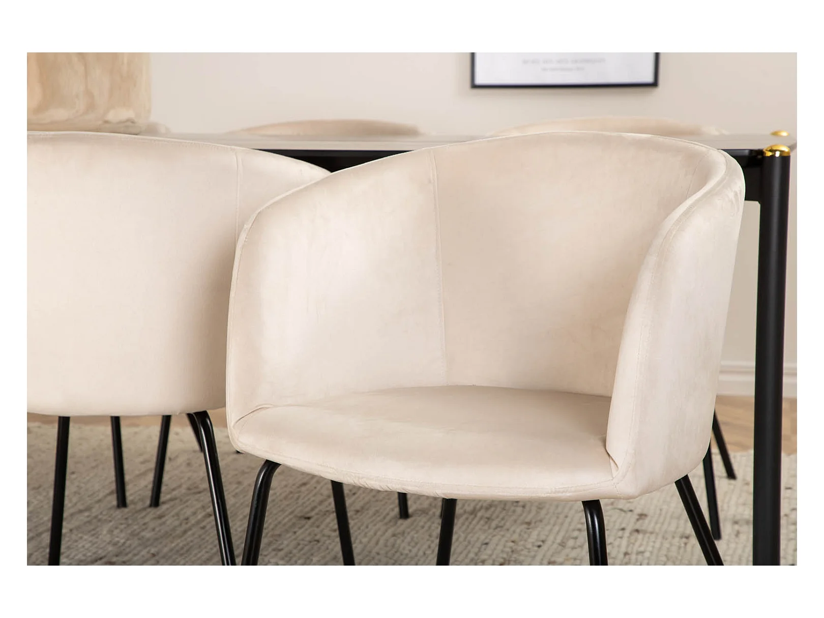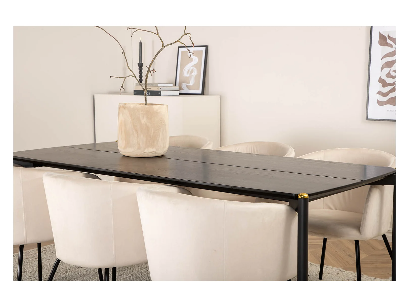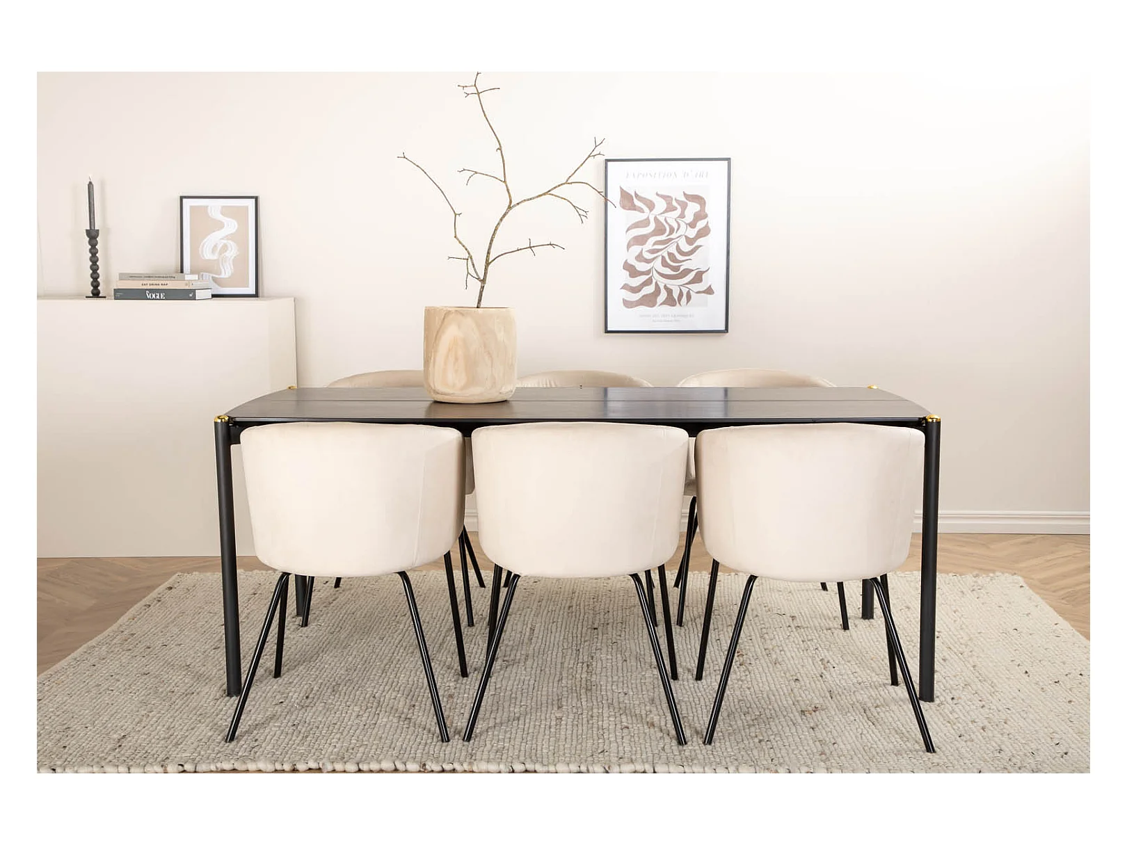 Pelle Essgruppe Esstisch schwarz und 6 Berit Esszimmerstühle Velour beige.