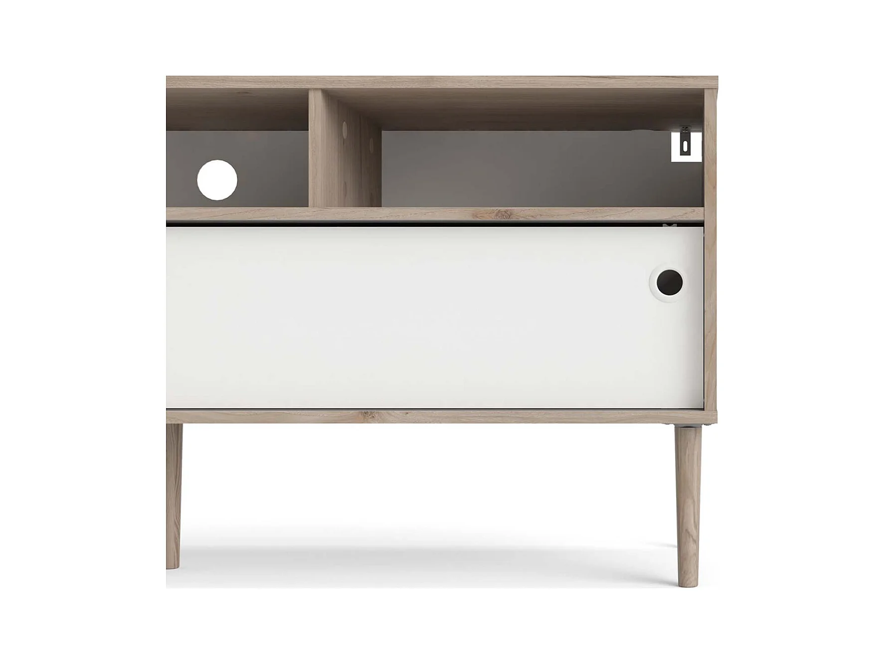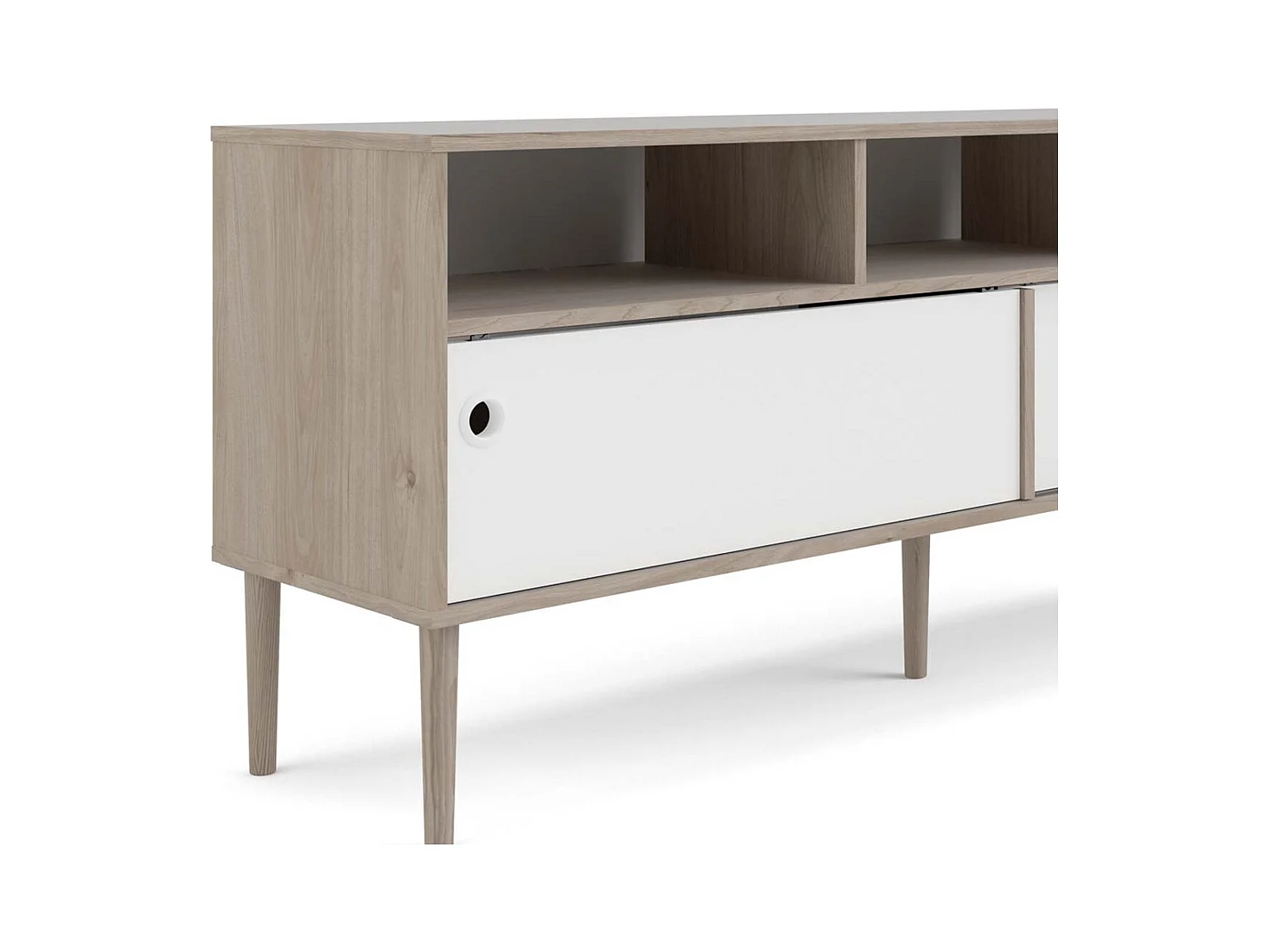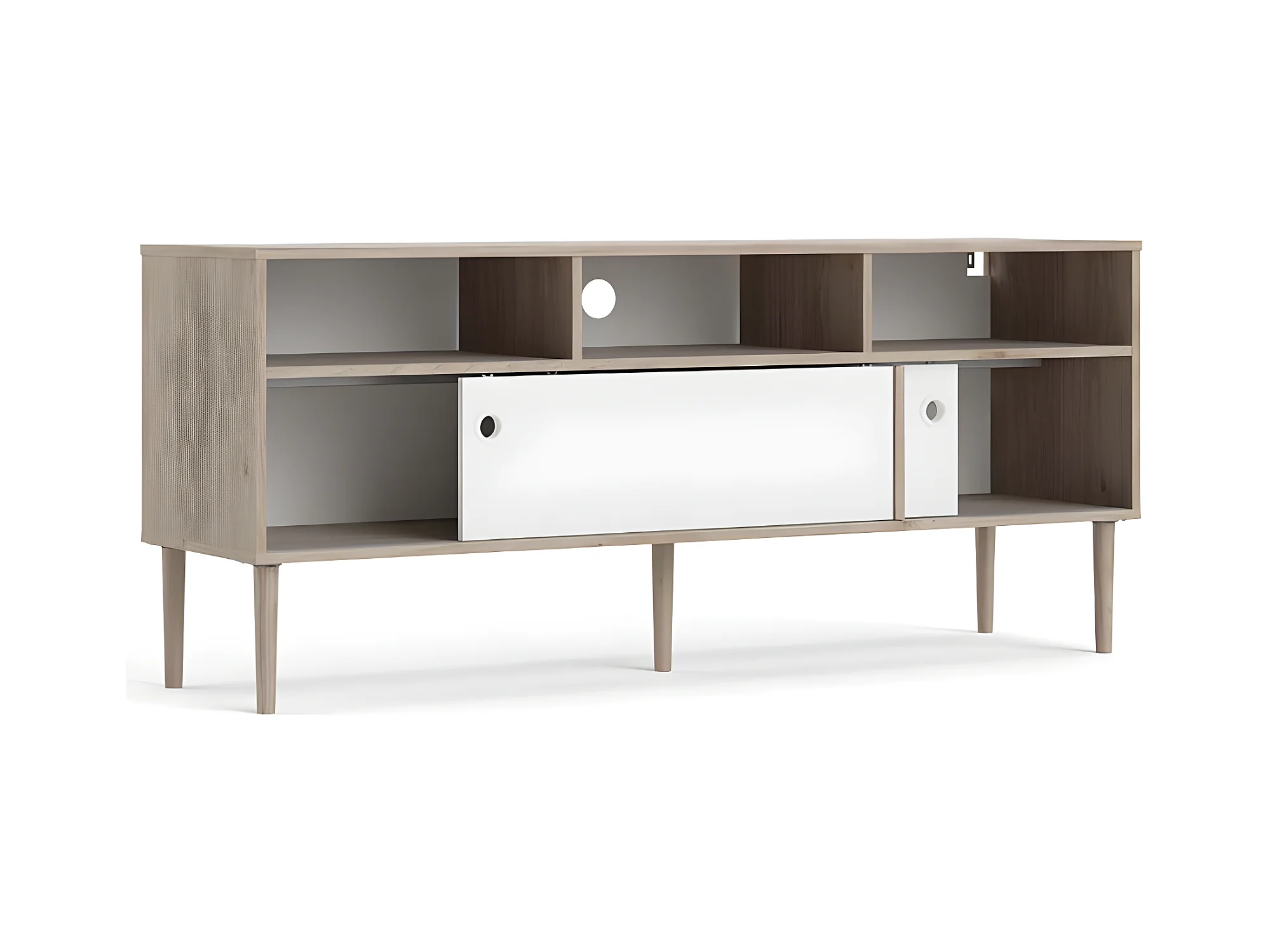 Penny TV Tisch 2 Schiebetüren und 3 Fächer Hickory-Dekor und Mattweiß.