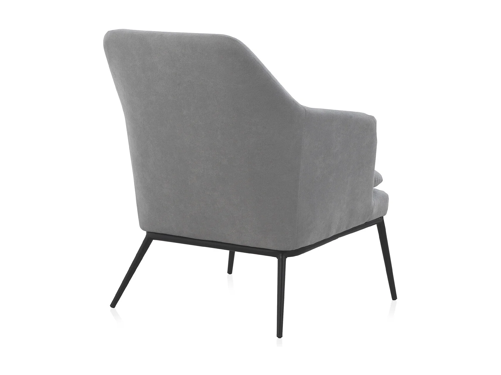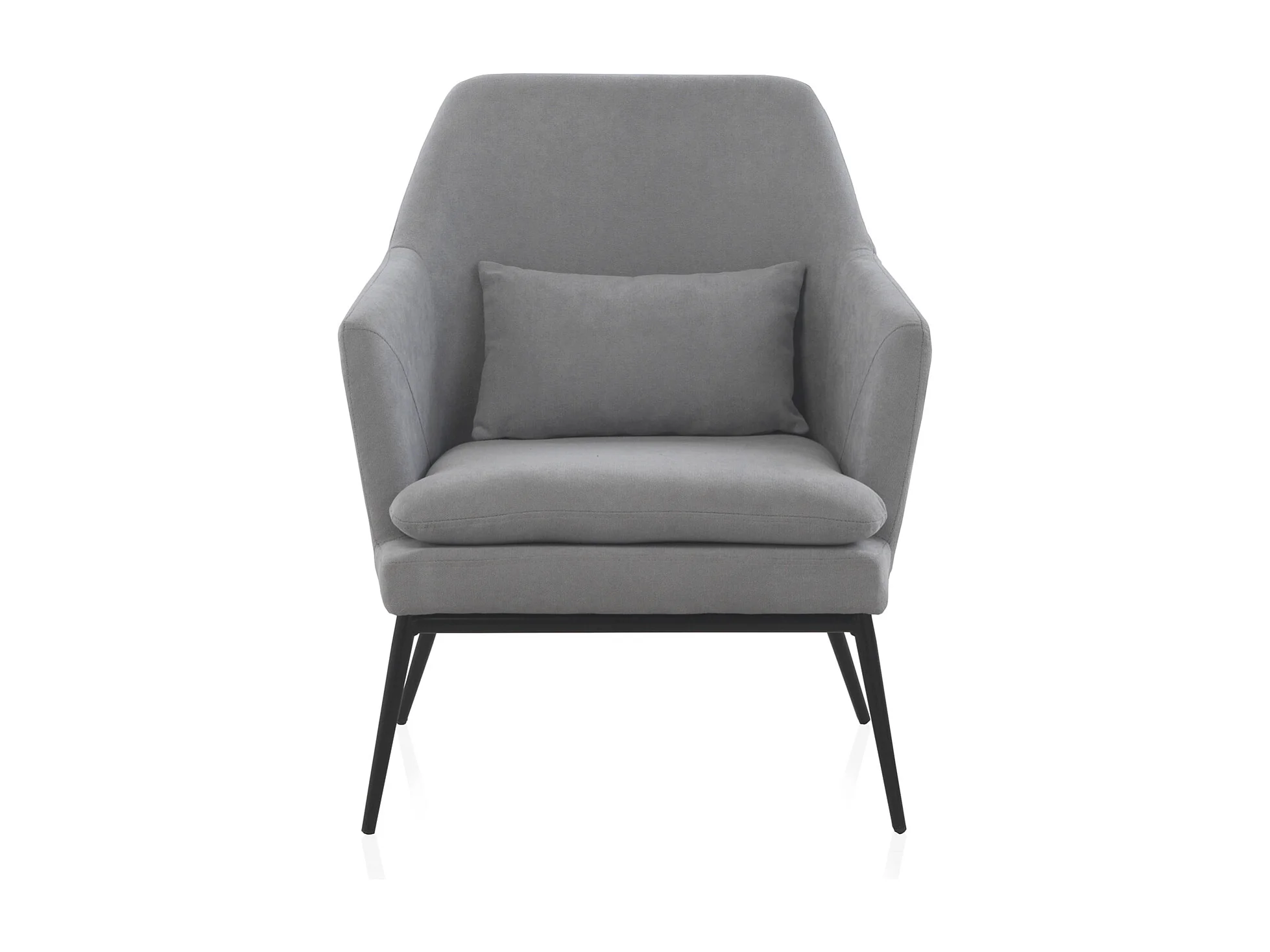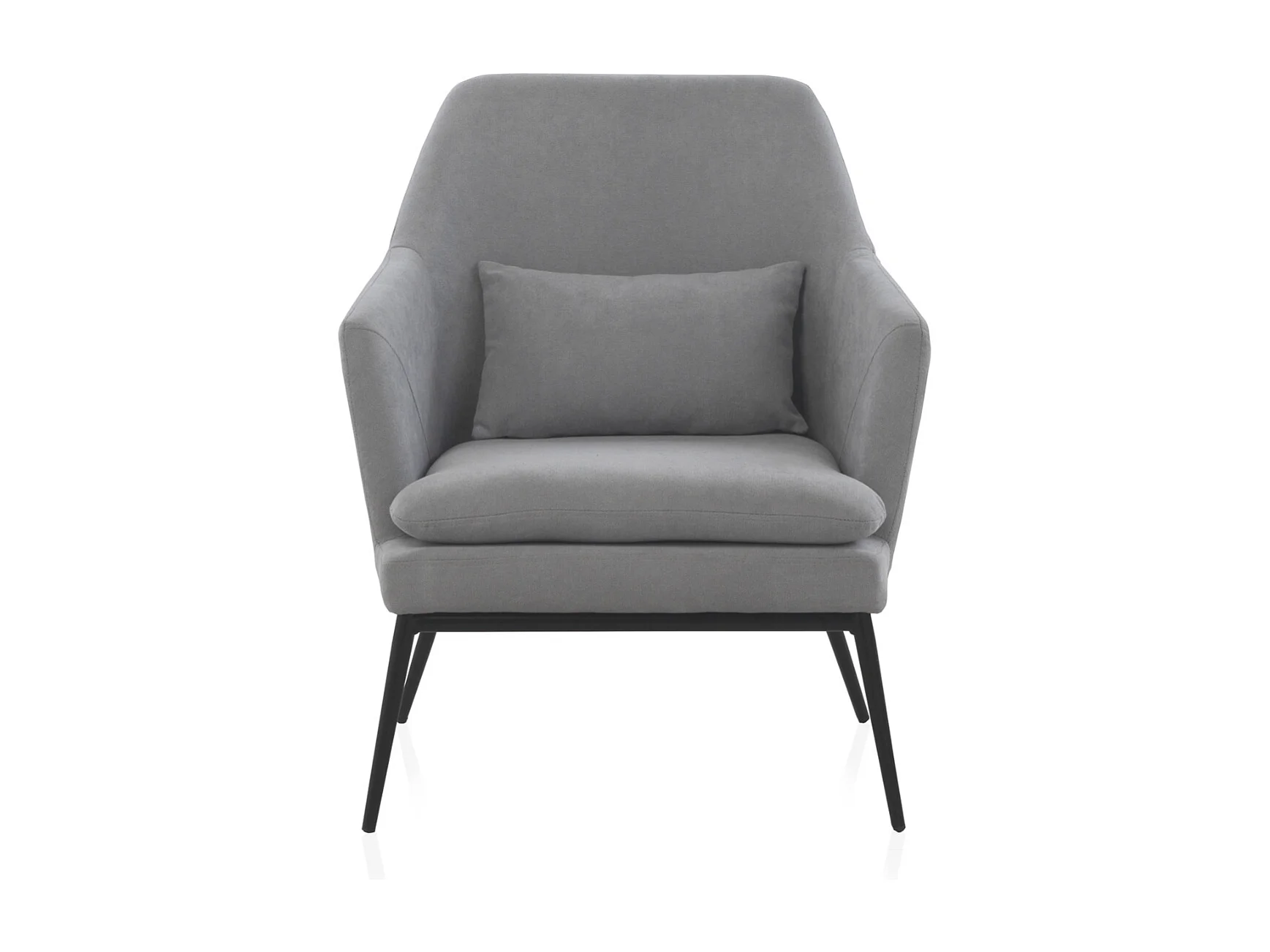 Perlgrau gepolsterter Sessel mit schwarz Metallkissen und Beinen