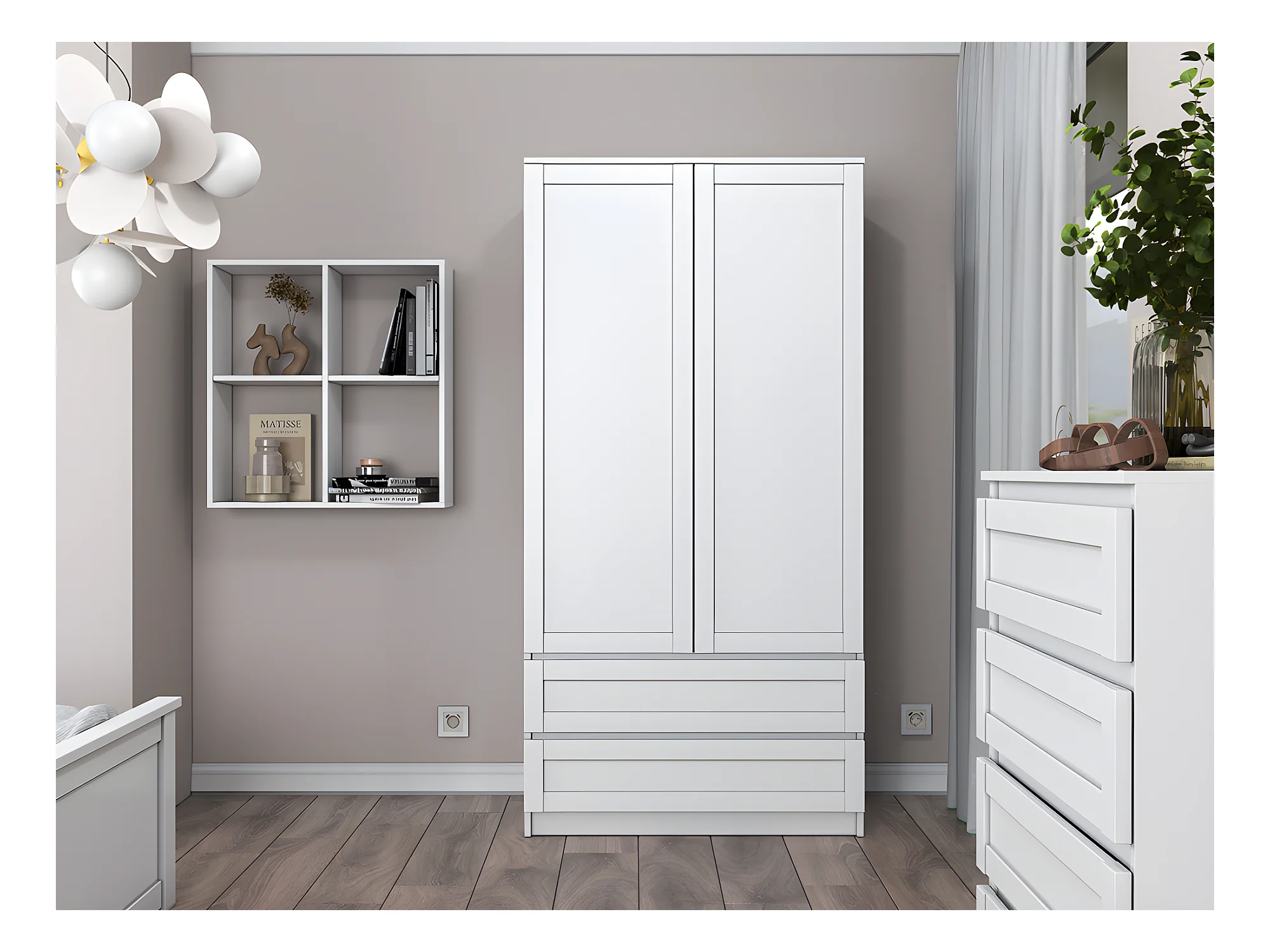 PERRY - Schrank 2 Türen 2 Schubladen - Klassischer Stil - 90x50x180 cm - Kleiderschrank Schlafzimmer