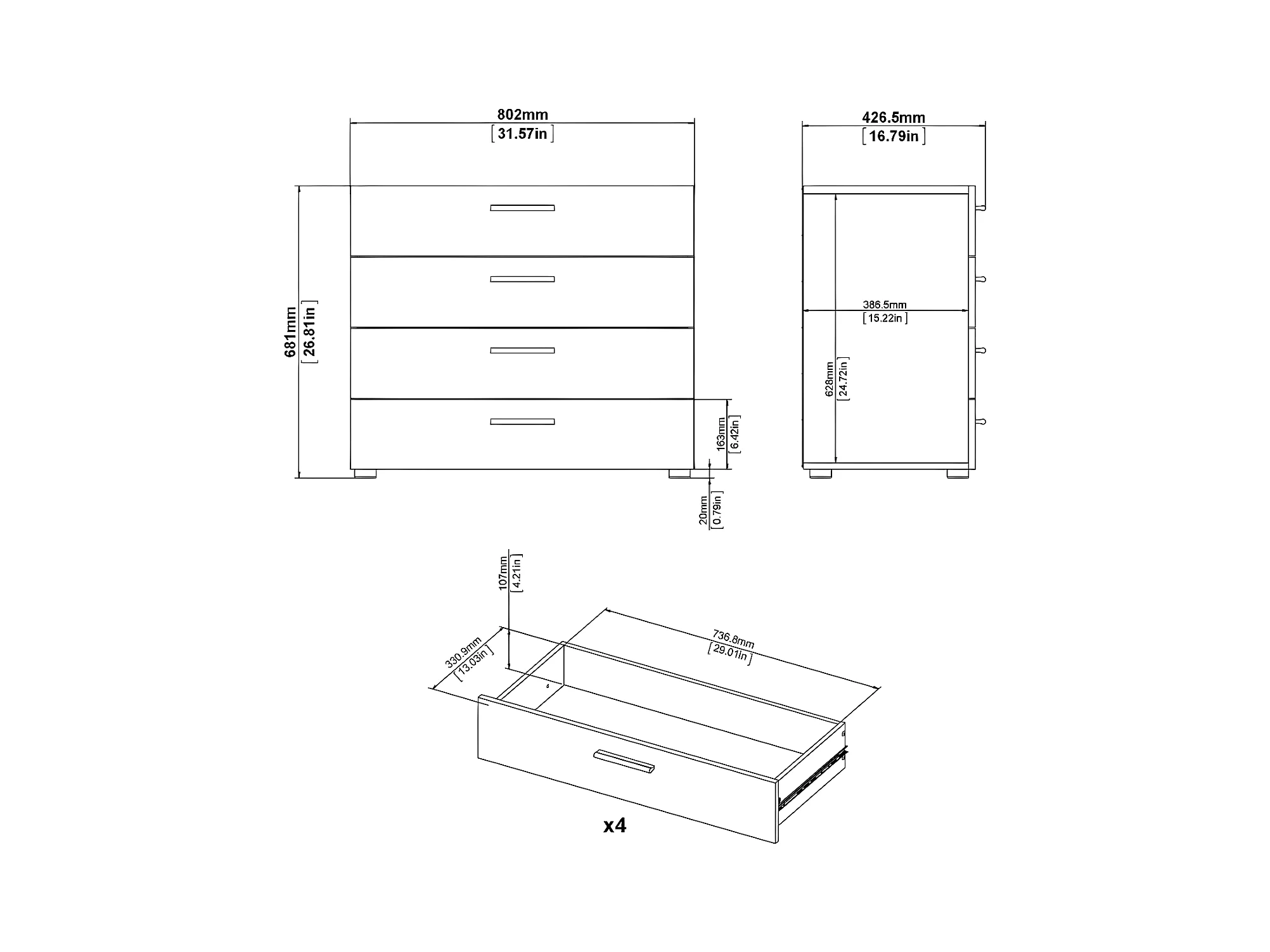 Petra Kommode mit 4 Schubladen, eiche dekor.