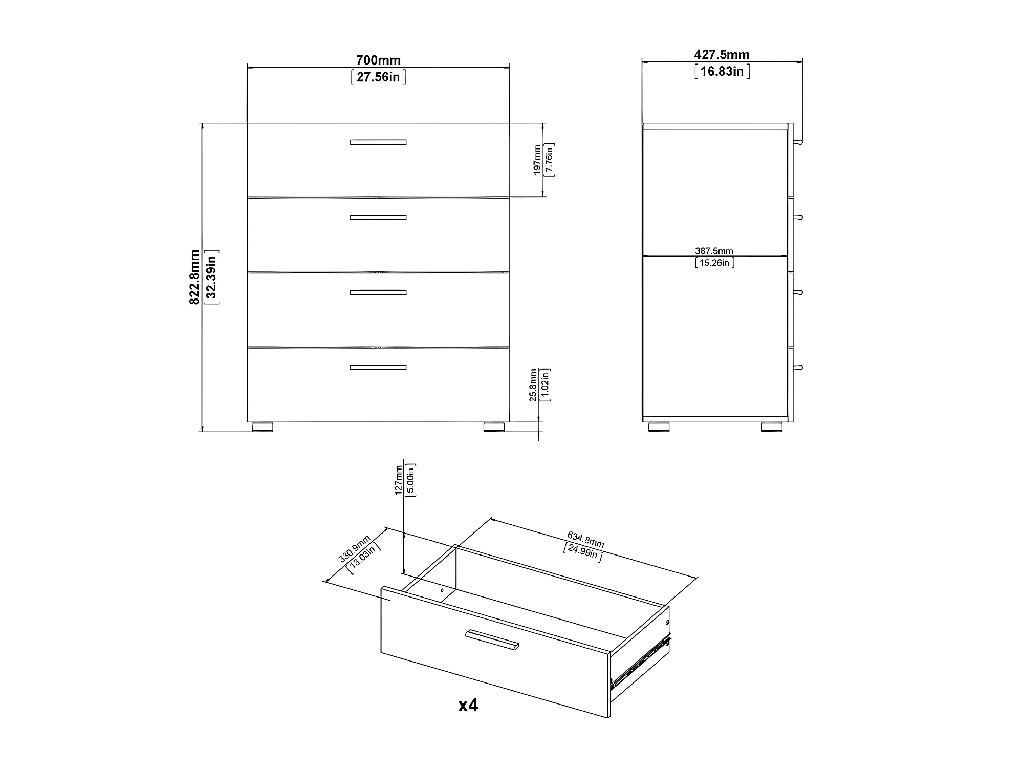 Petra Kommode mit 4 Schubladen, mattschwarz.