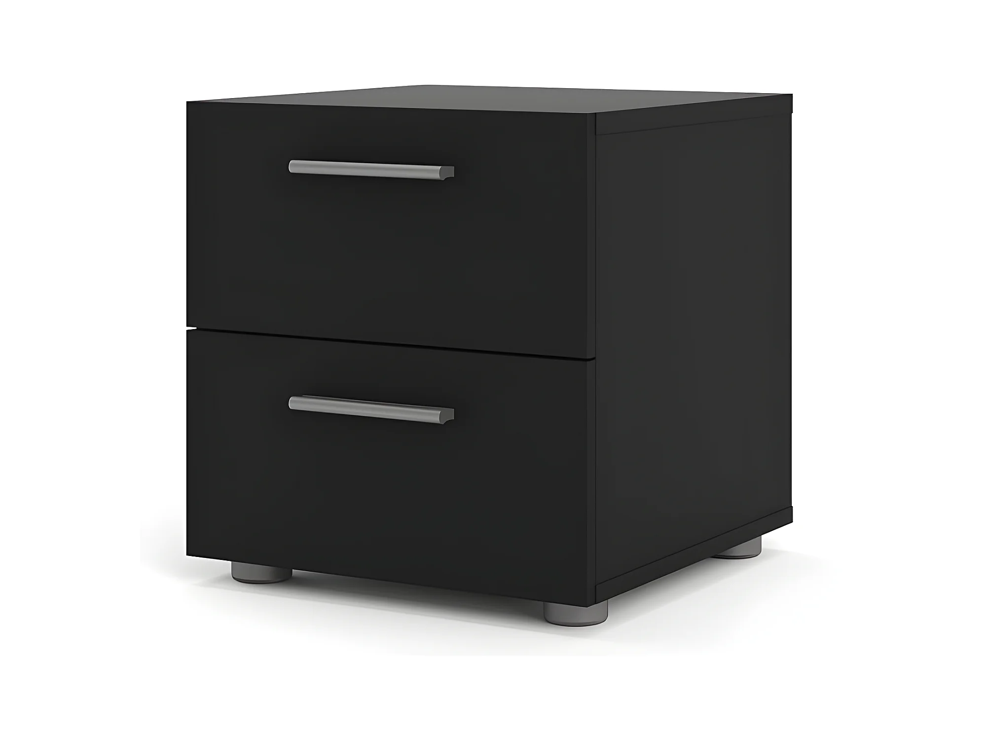 Petra Nachttisch mit 2 Schubladen, mattschwarz.