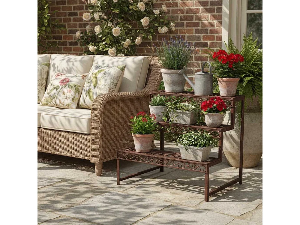 Pflanzentreppe aus patiniertem Metall Arabesque