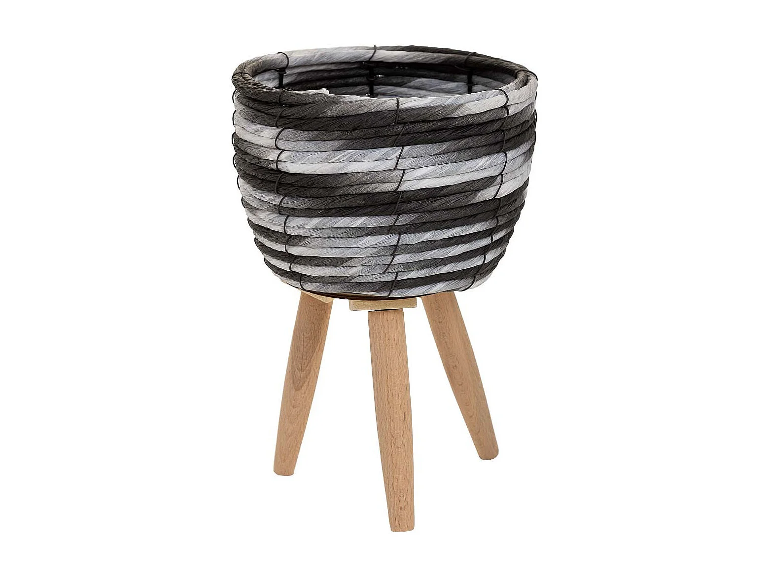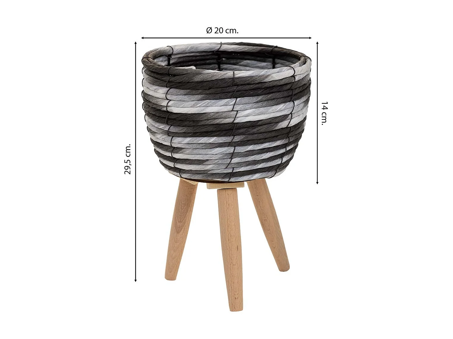 PflanzgefÃ¤ß aus Metall und schwarzem Papierseil, D20x14/29,5h cm