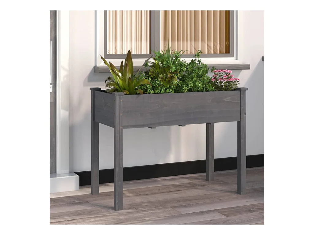 Pflanzgefäß mit grauer Auskleidung, 118 x 59 x 76 cm, massives Tannenholz