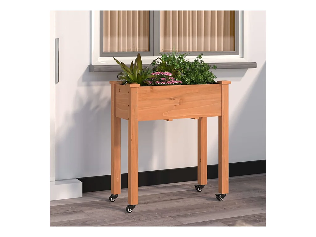 Pflanzkübel mit Einsatz und Rollen Braun 71x37x80 cm Tannenholz