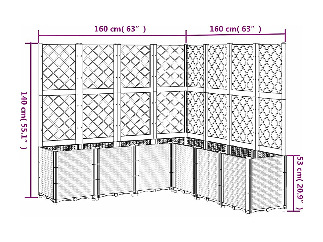 Pflanzkübel mit Rankgitter Hellgrau 160x160x140 cm PP