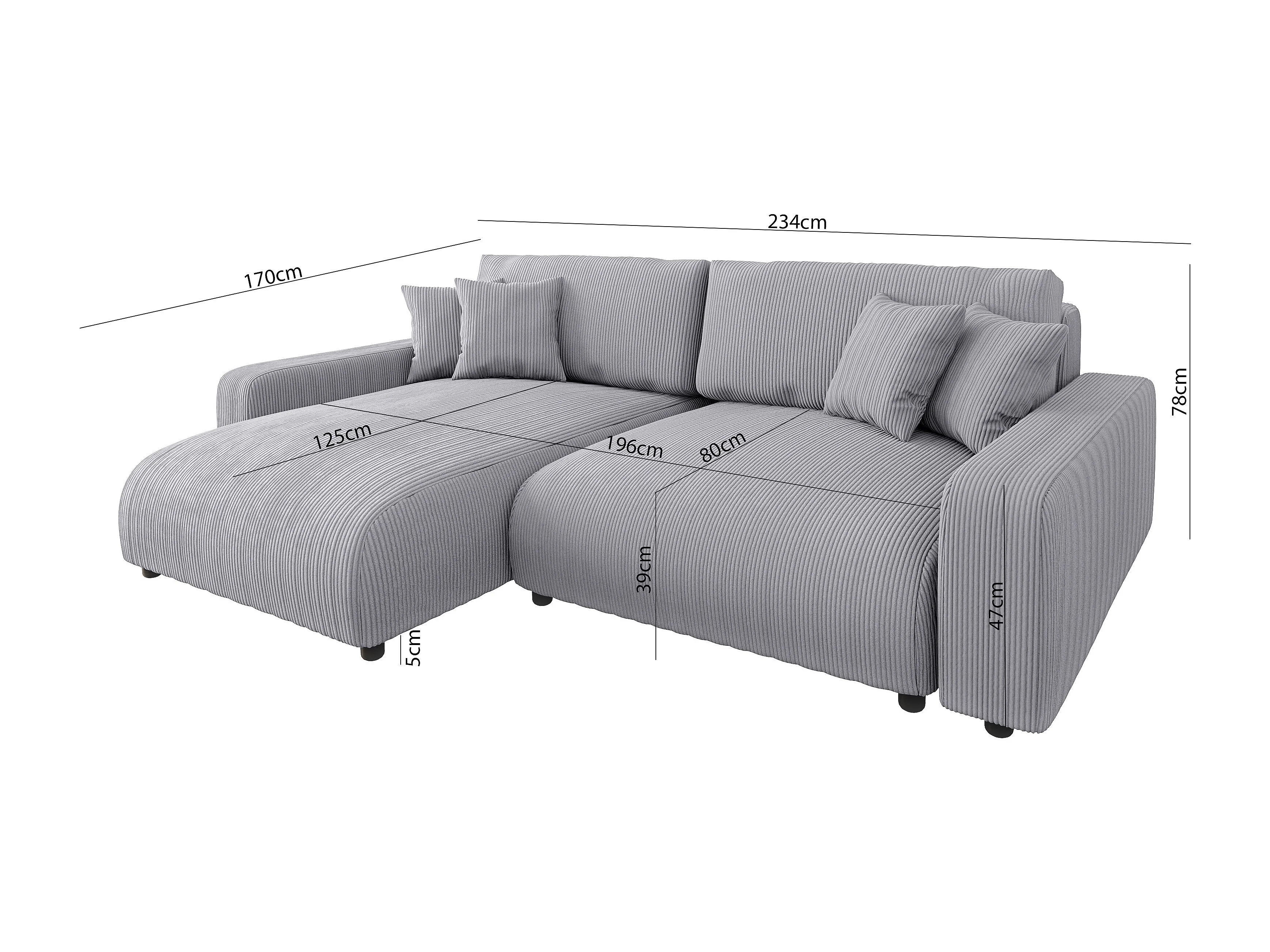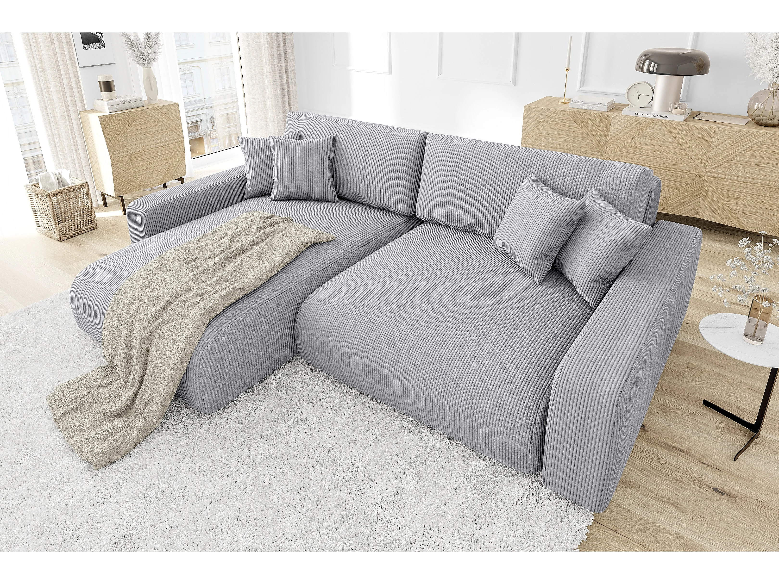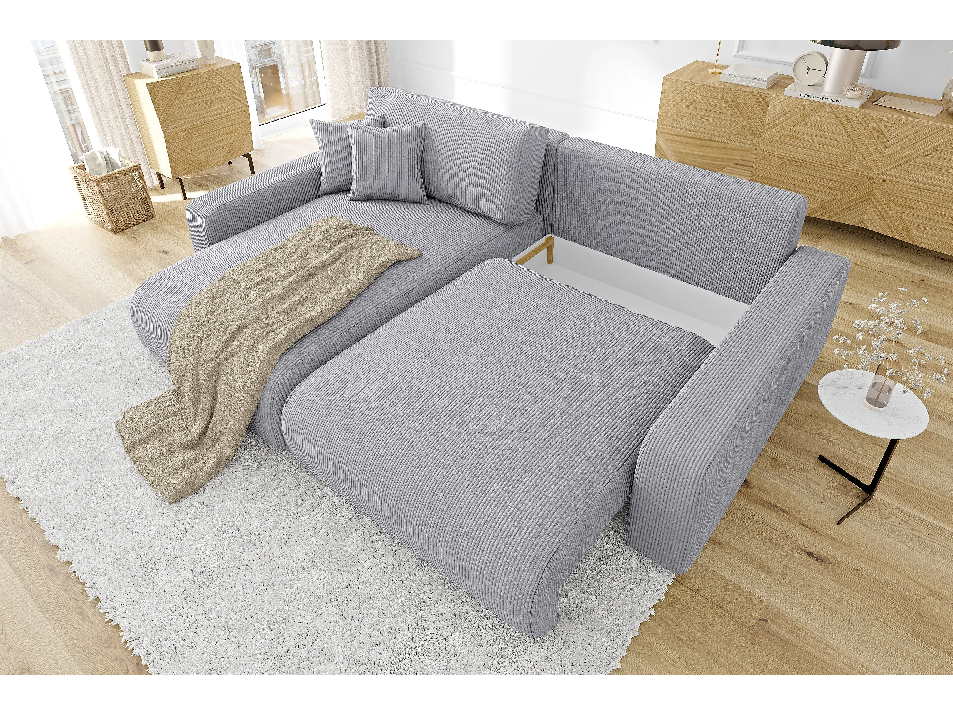 Emma- Ecksofa mit Bettfunktion und Bettkasten in Cord-Stoff schöner Sitzkomfort