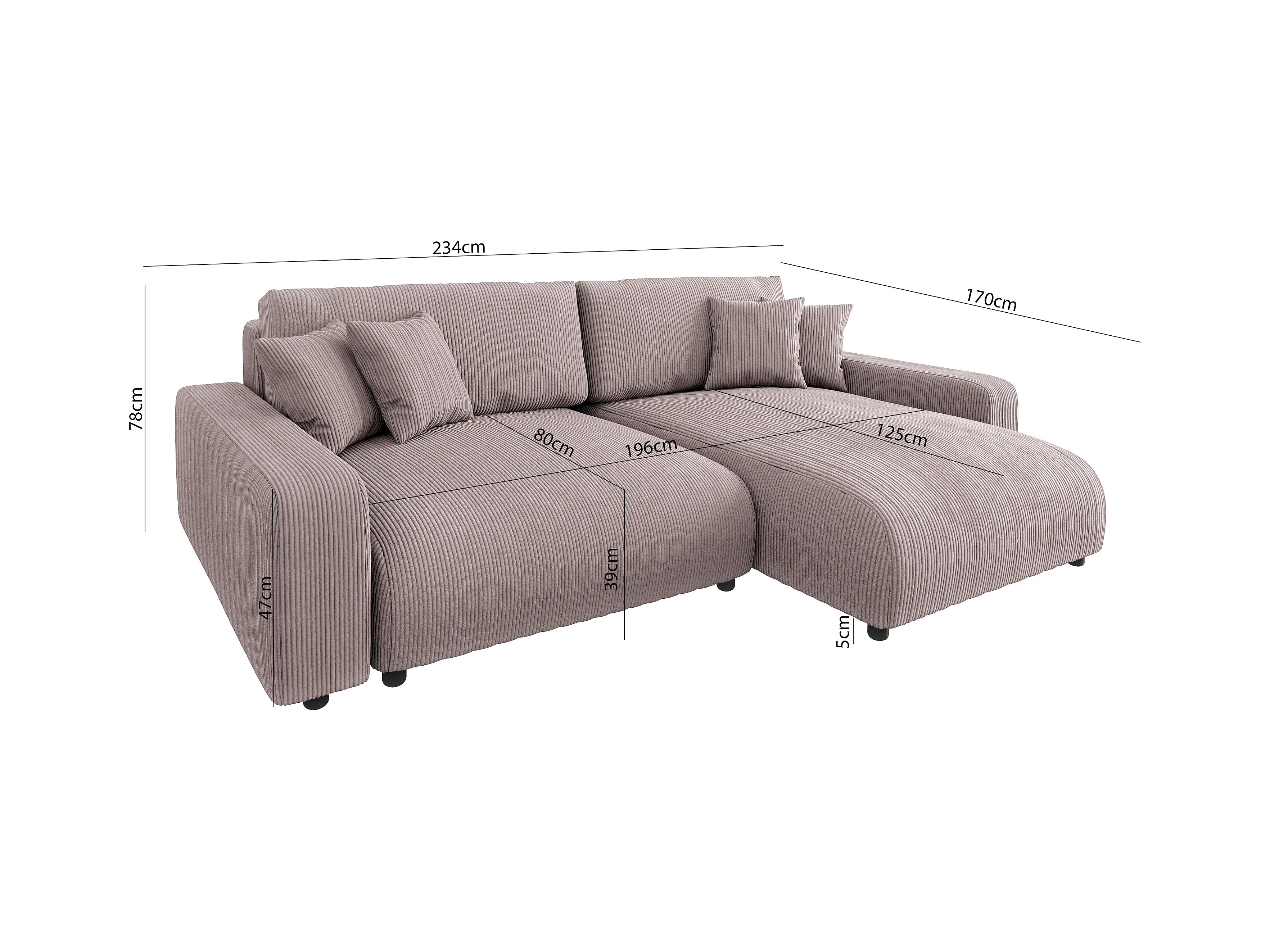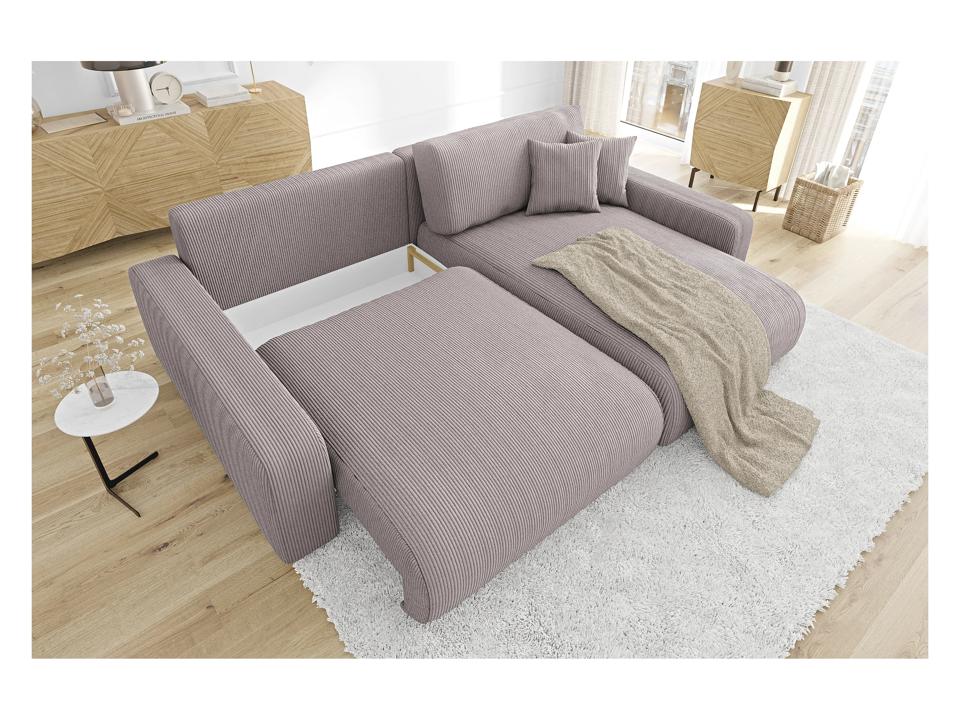Emma- Ecksofa mit Bettfunktion und Bettkasten in Cord-Stoff schöner Sitzkomfort