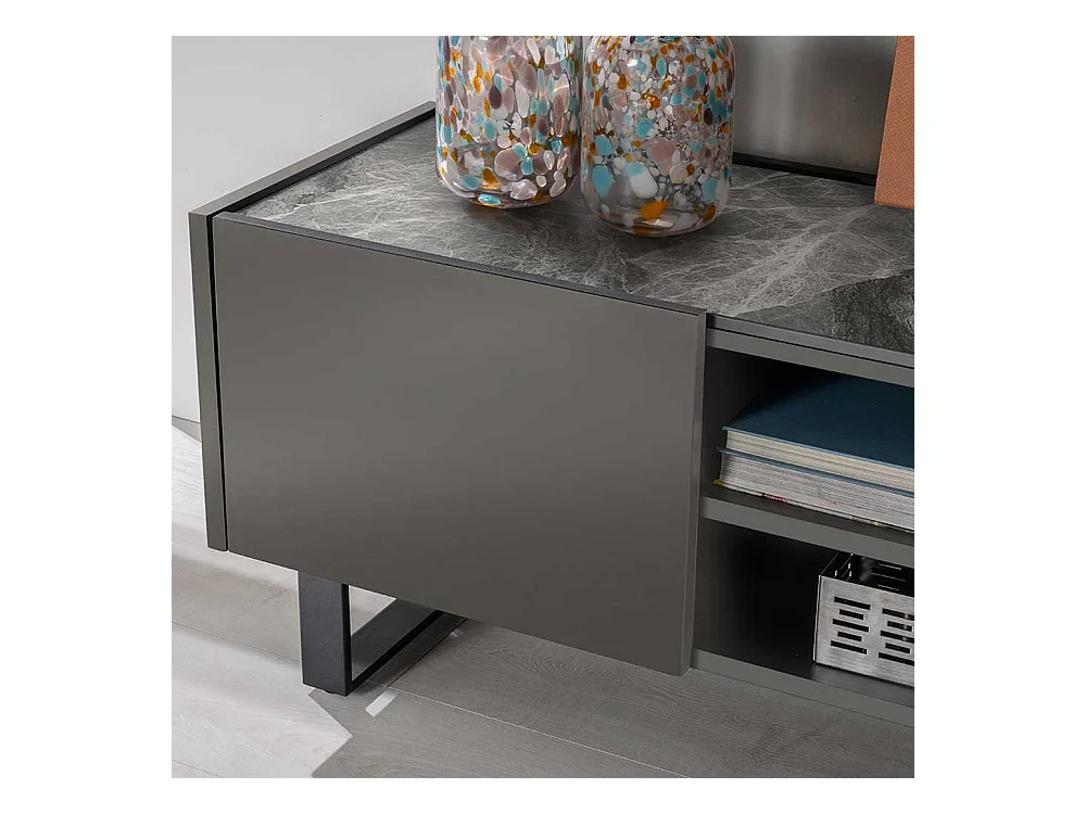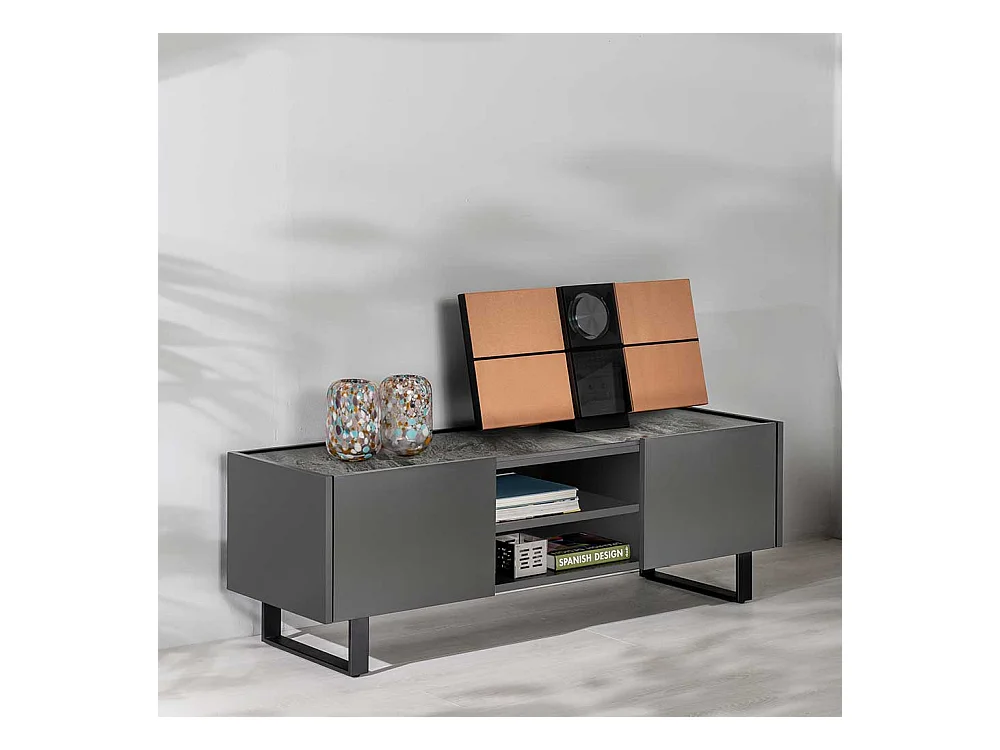 Phonomöbel Grau in modernem Design 140 cm breit 45 cm hoch