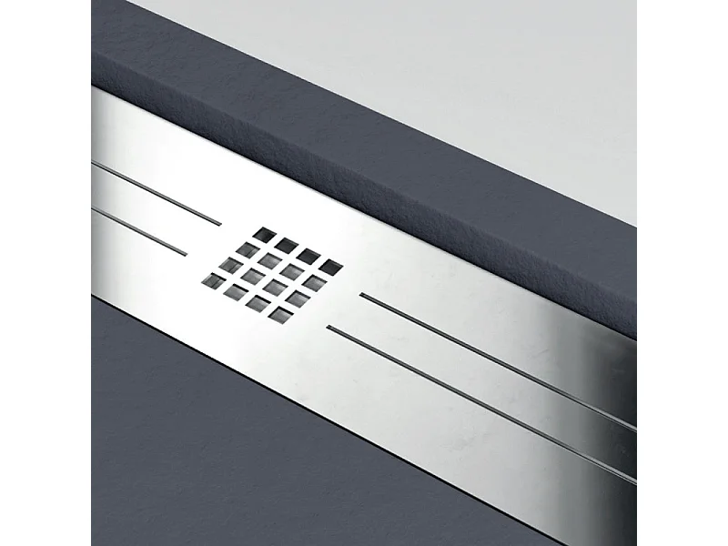 Mineralguss-Duschwanne extra flach ELITE Schieferoptik ANTHRAZIT 90x170cm Edelstahl in chrom