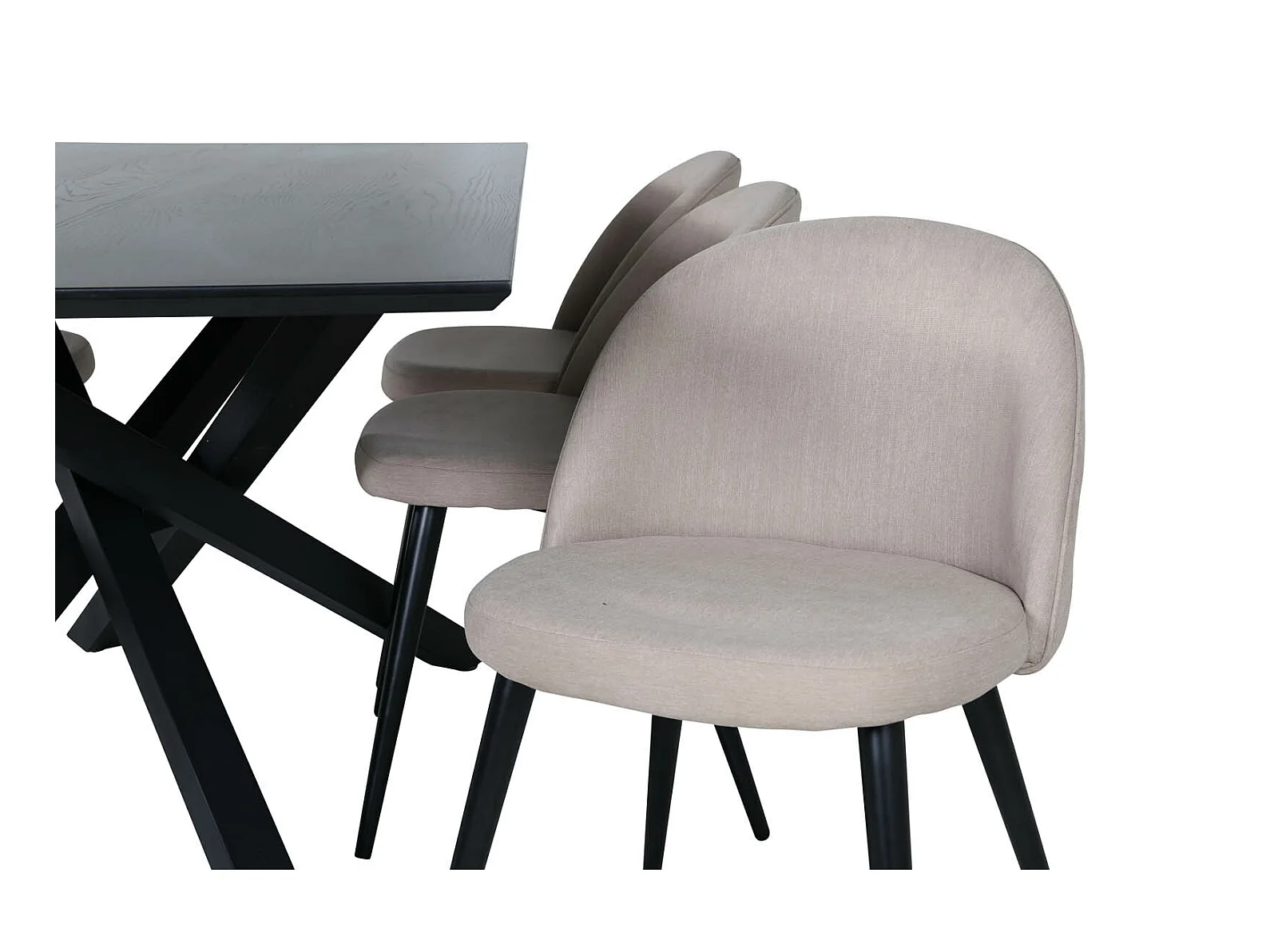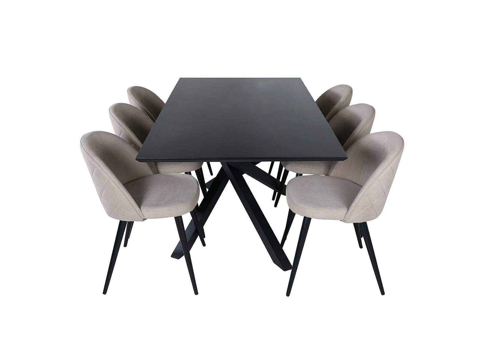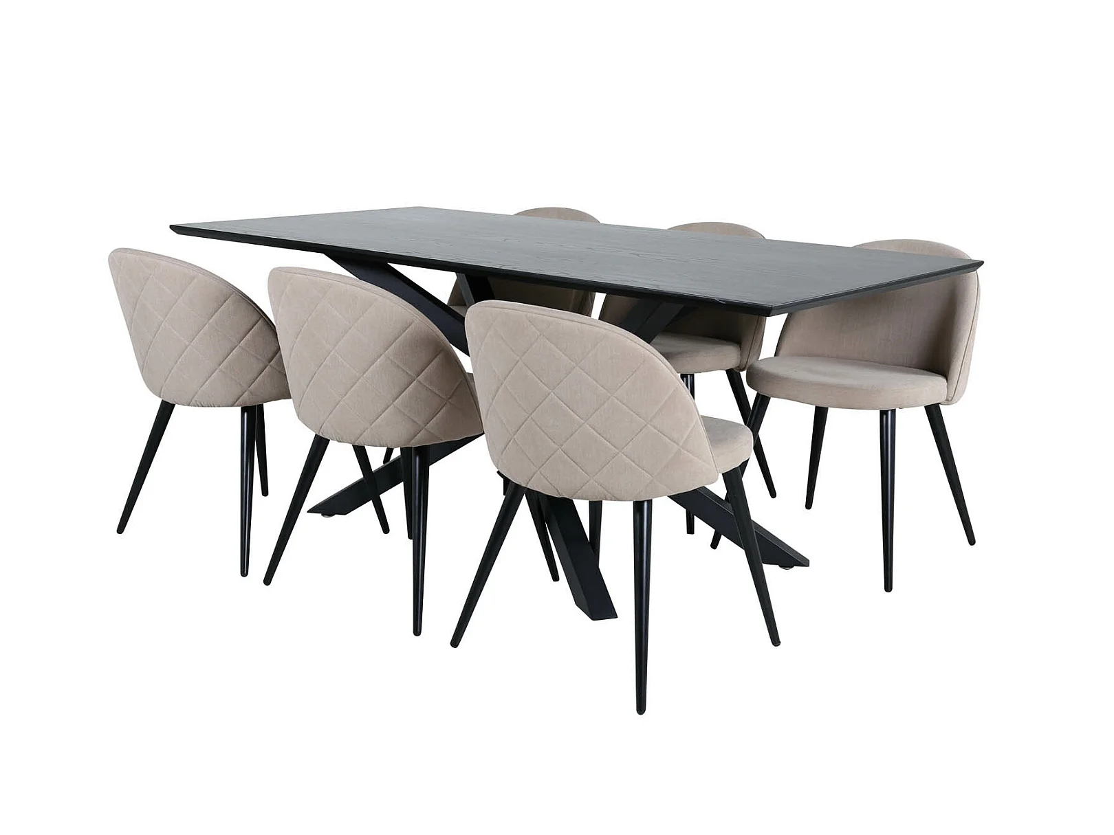 PiazzaBLBL Essgruppe Esstisch schwarz und 6 Velvet Stitches Esszimmerstühle beige.