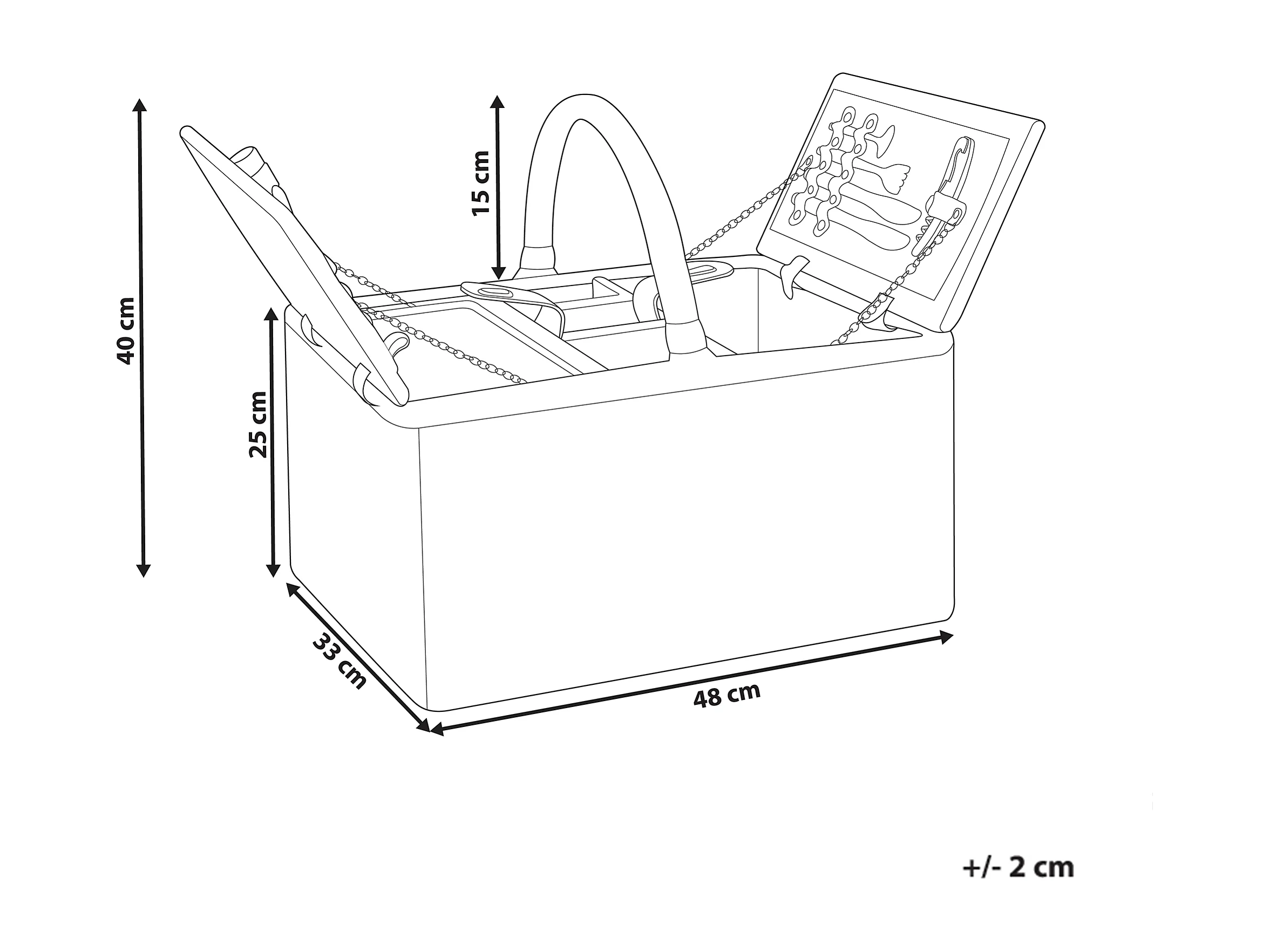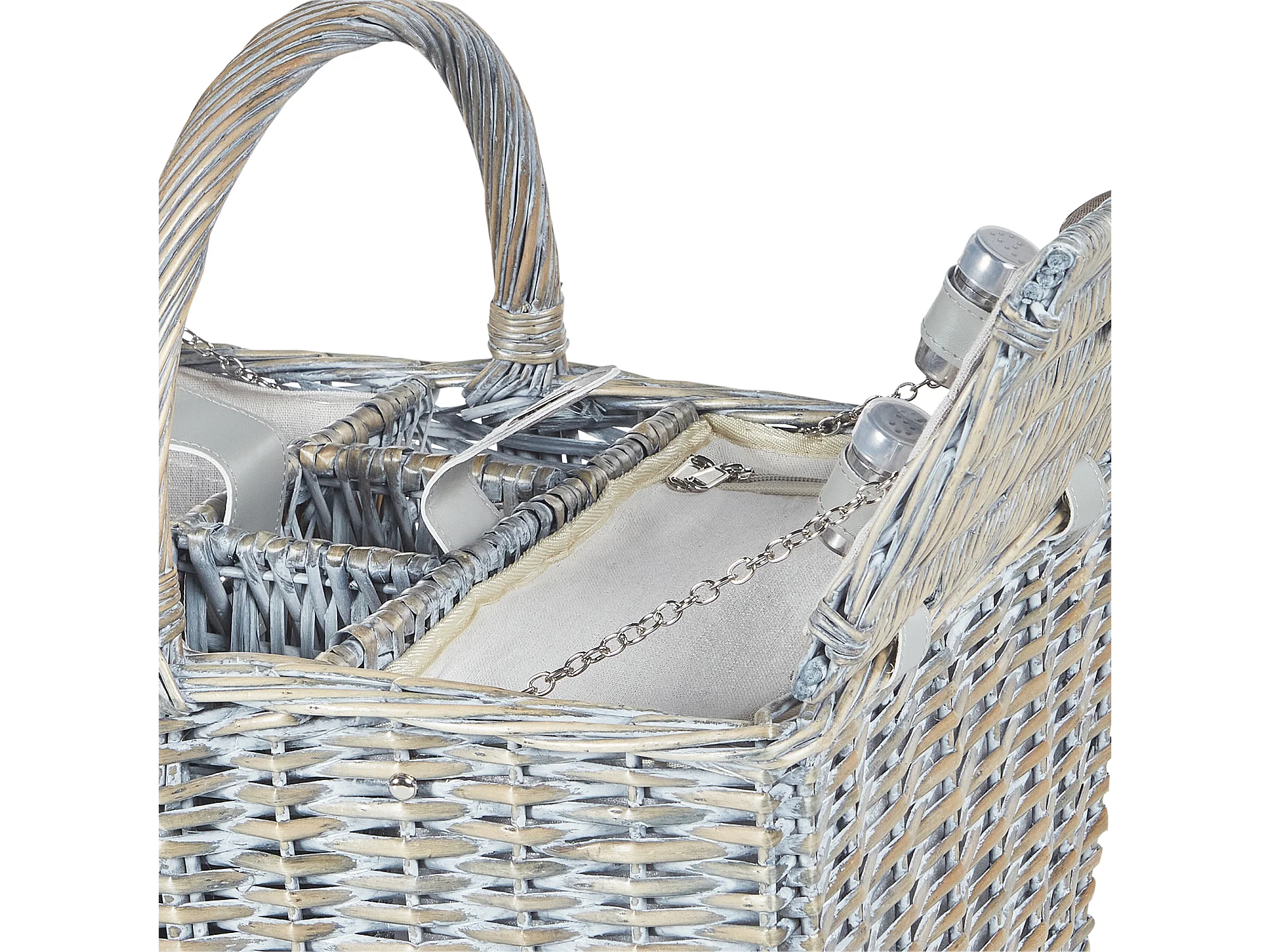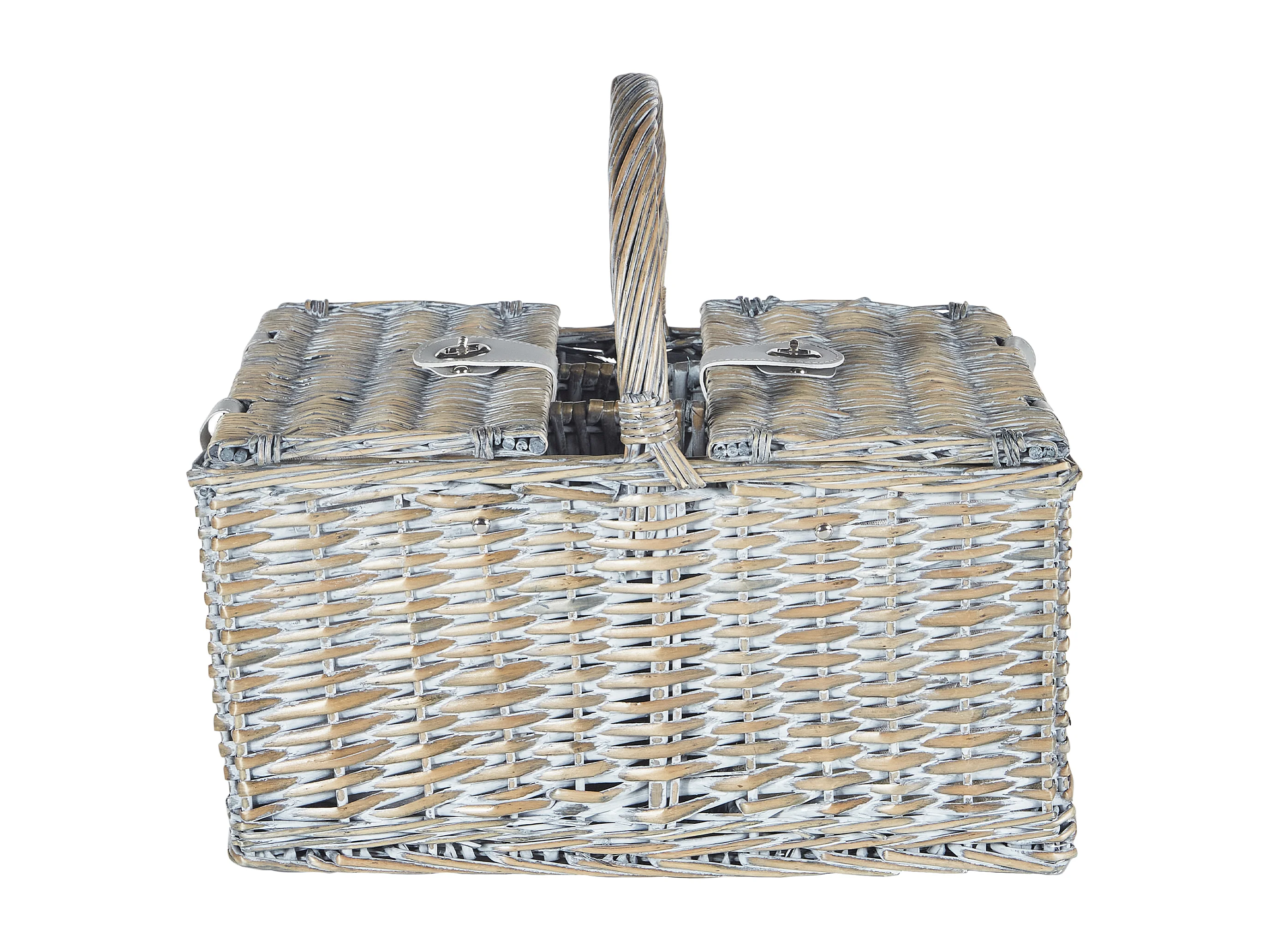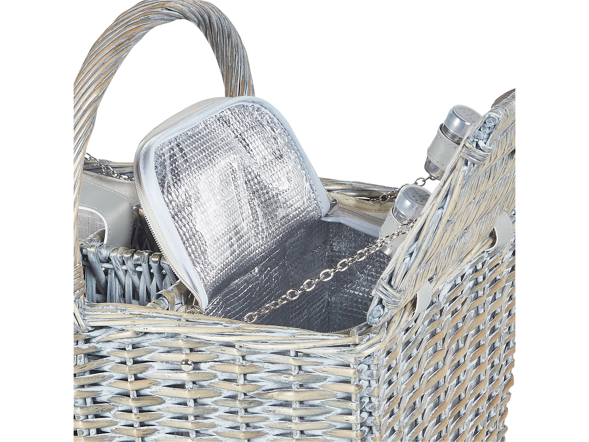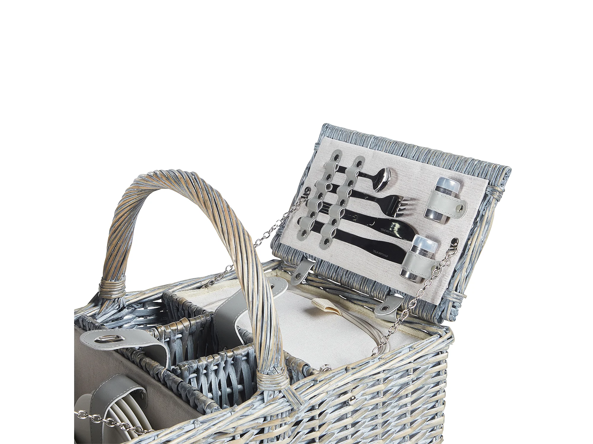 Picknickkorb 4 Personen Weide grau Kühltasche Teller Besteck Weingläser Groseille
