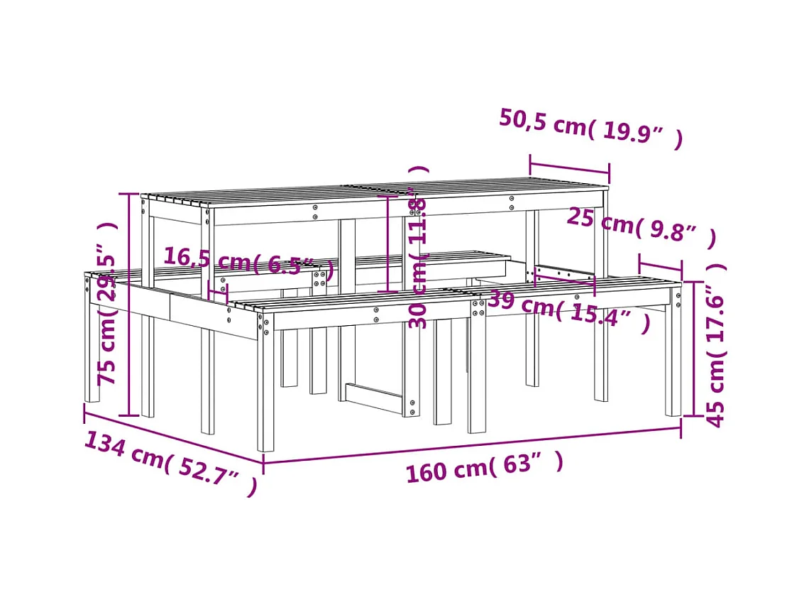 Picknicktisch 160x134x75 cm Massivholz Kiefer