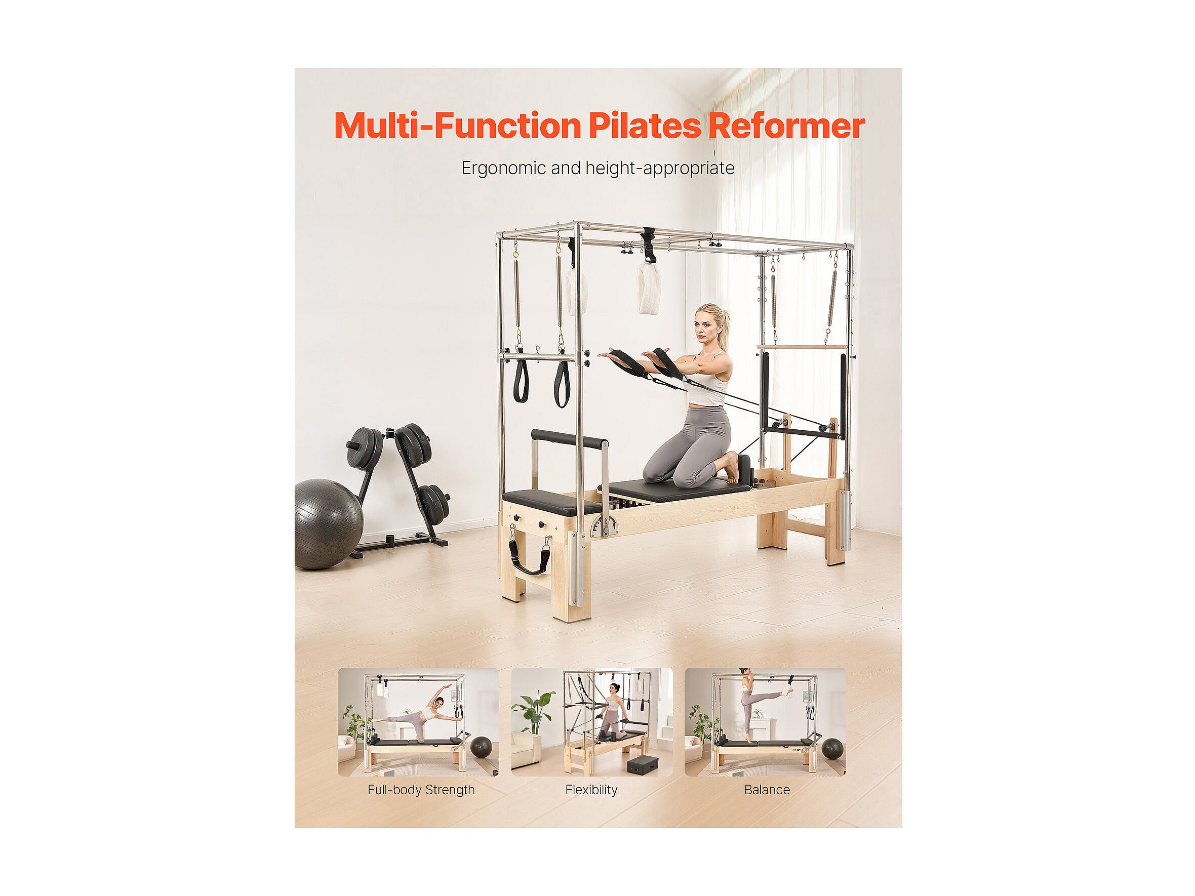 Pilates-Gerät SucceBuy Pilates-Reformer aus Holz, Yoga-Trainingsgerät für Das Heim-Fitnessstudio