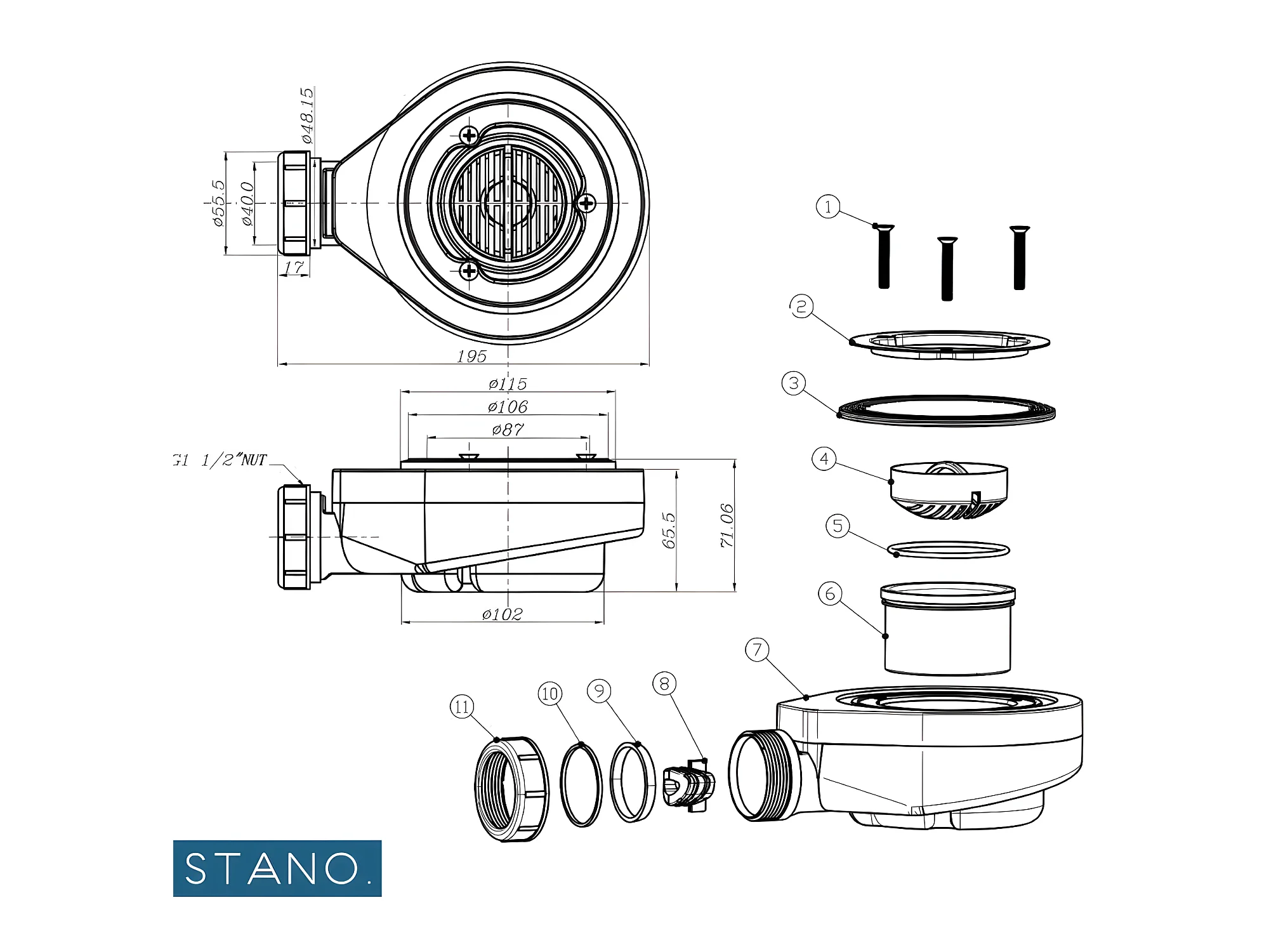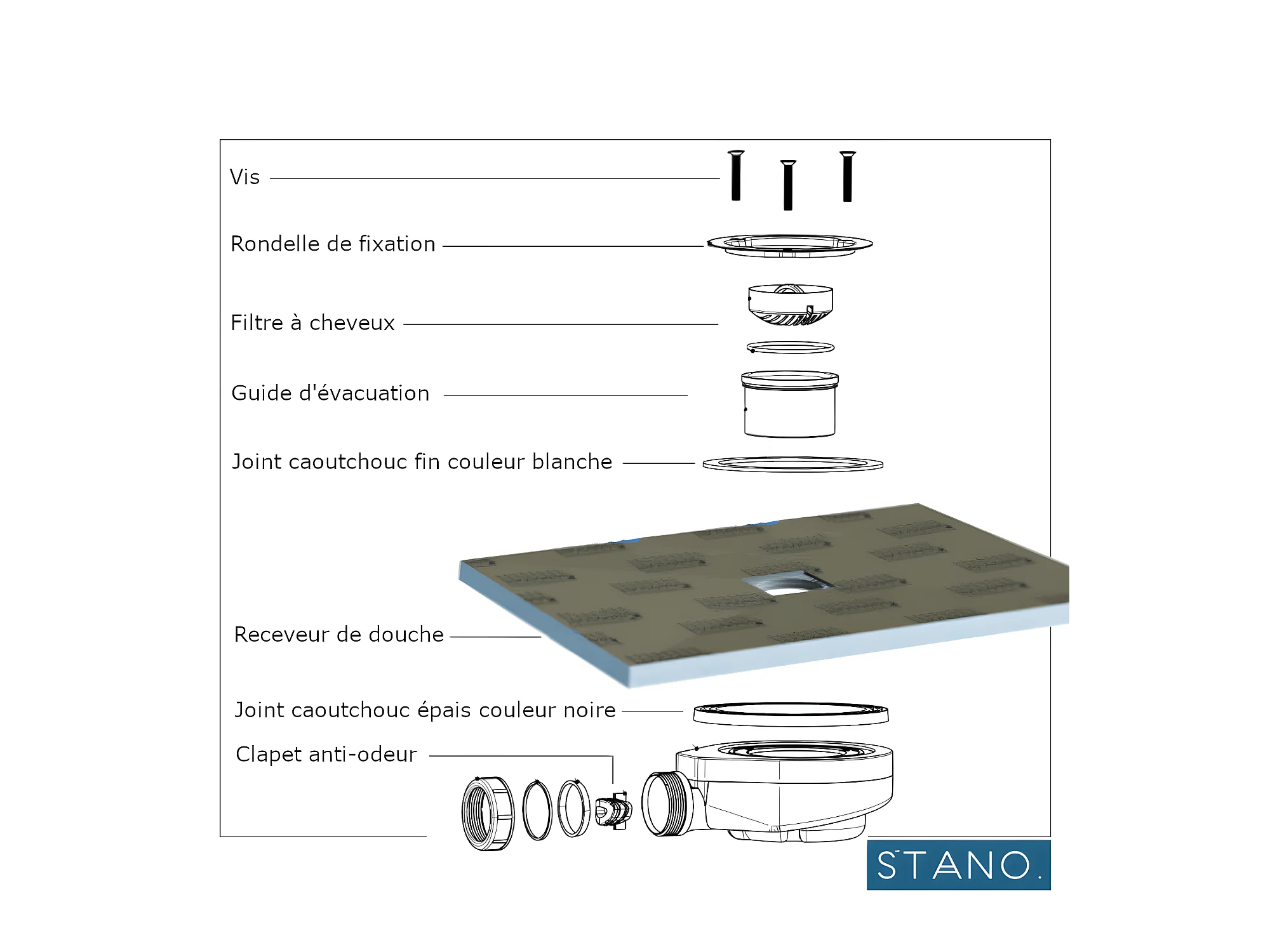 Piletta di scarico orizzontale senza coperchio Ø90 DONA per piatto doccia Solicast®
