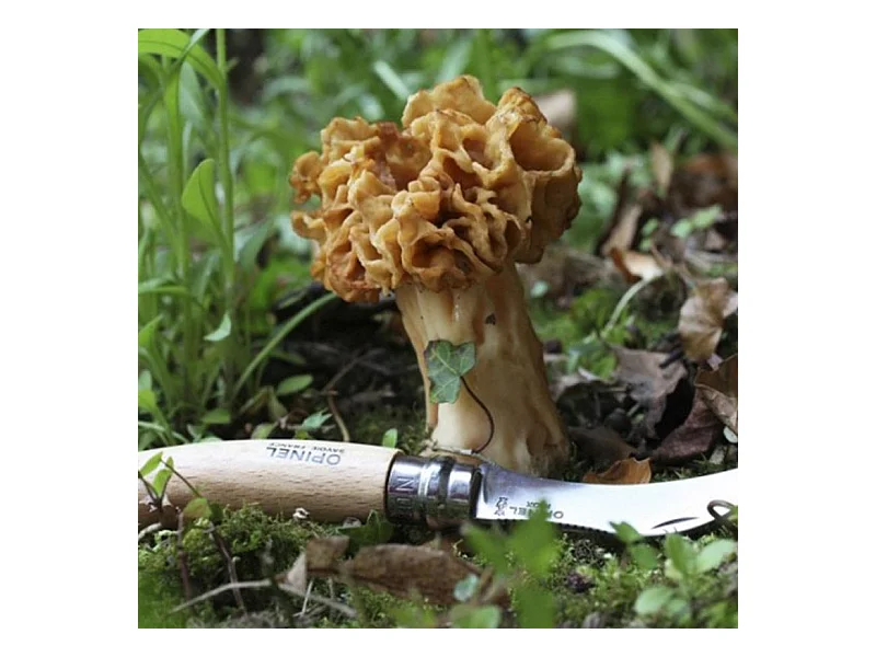 Pilzmesser Opinel - 8 cm, gebogene Klinge aus rostfreiem Stahl, Griff aus naturbelassenem lackierten Buchenholz