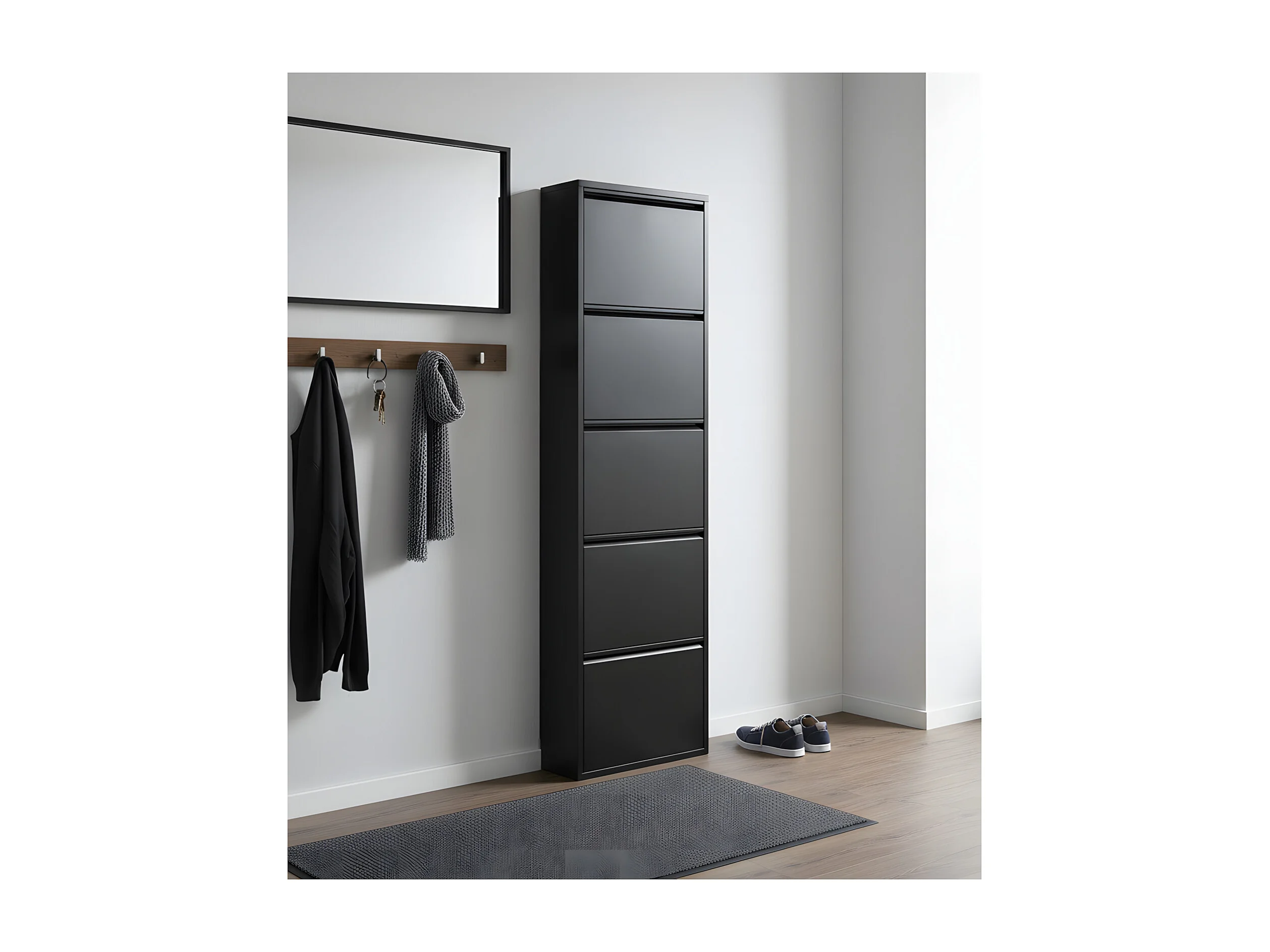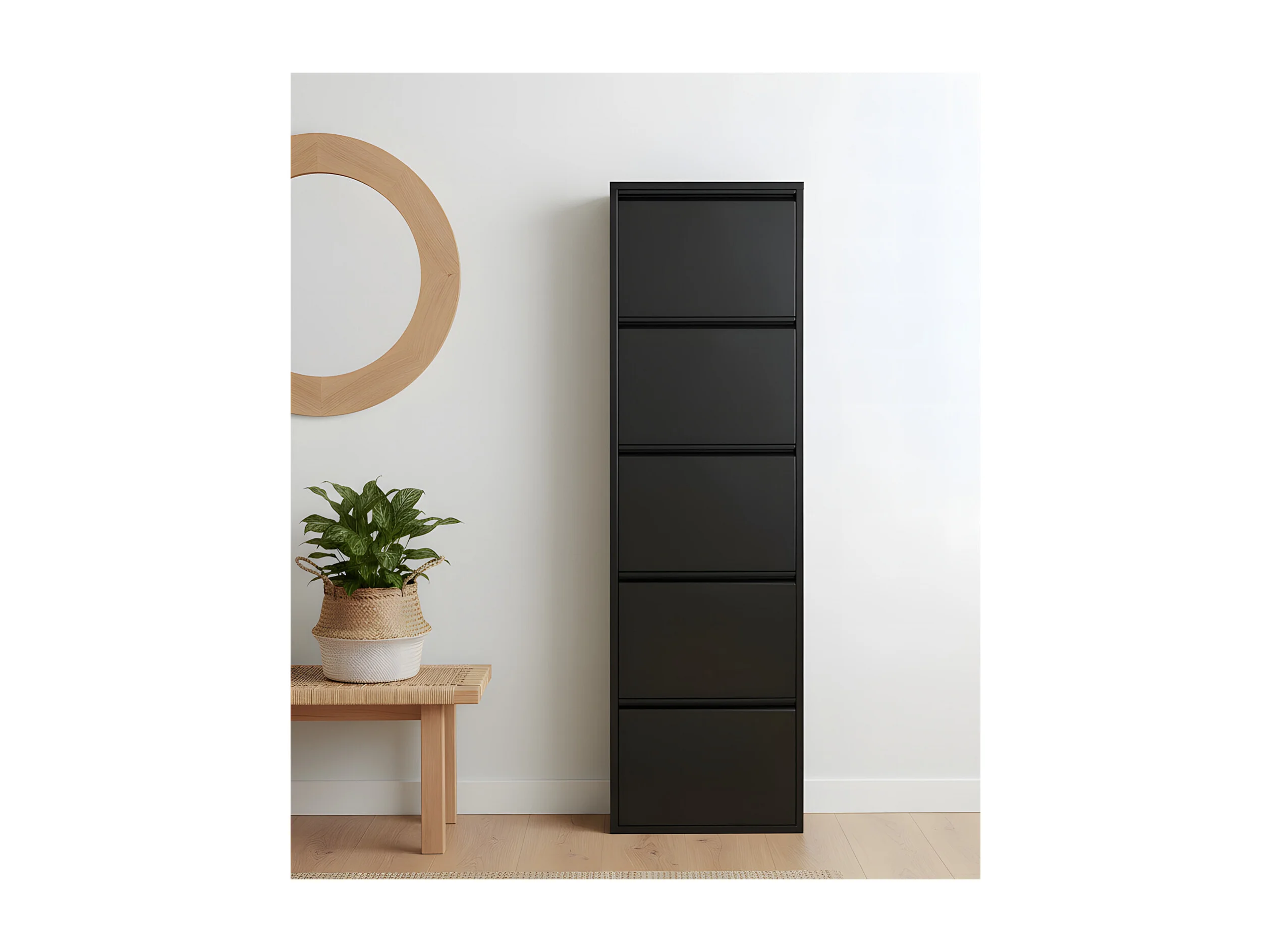 Pisa Schuhschrank mit 5 Klappen/ Türen in Metall schwarz. Fertig montiert.
