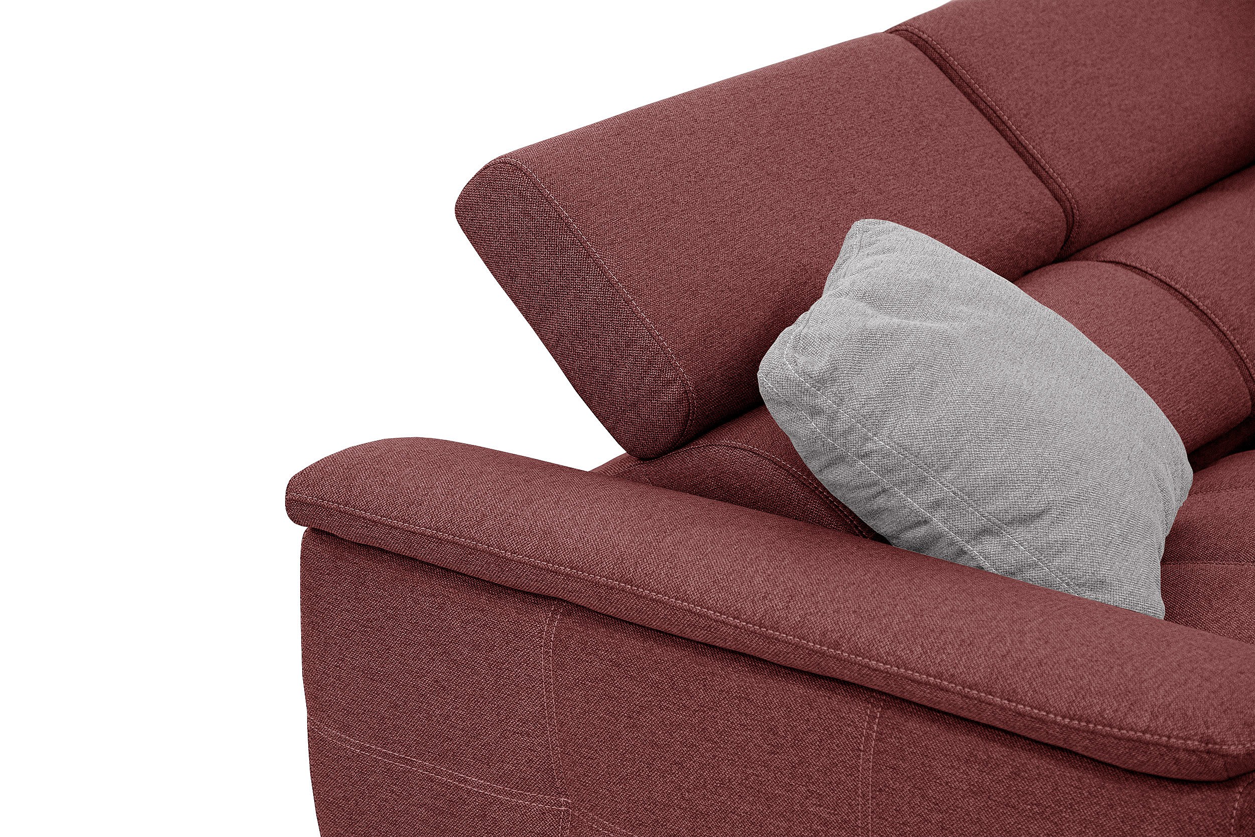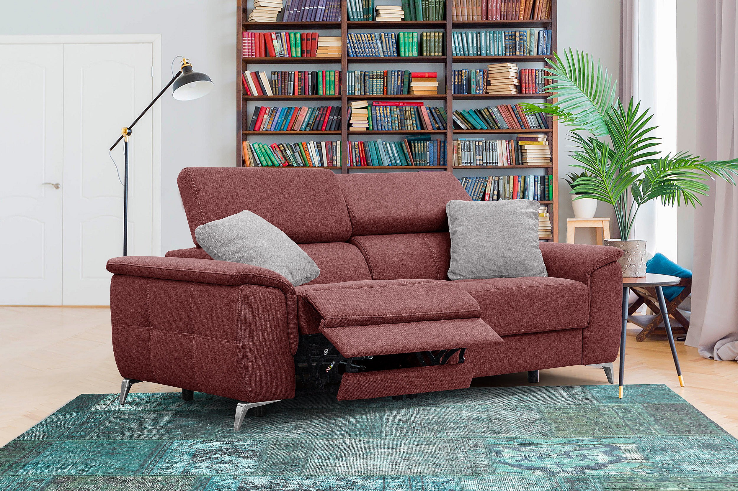 PLAUEN Sofa 3-Sitzer mit 2 Relaxfunktionen und verstellbare Kopfstützen, bordeaux