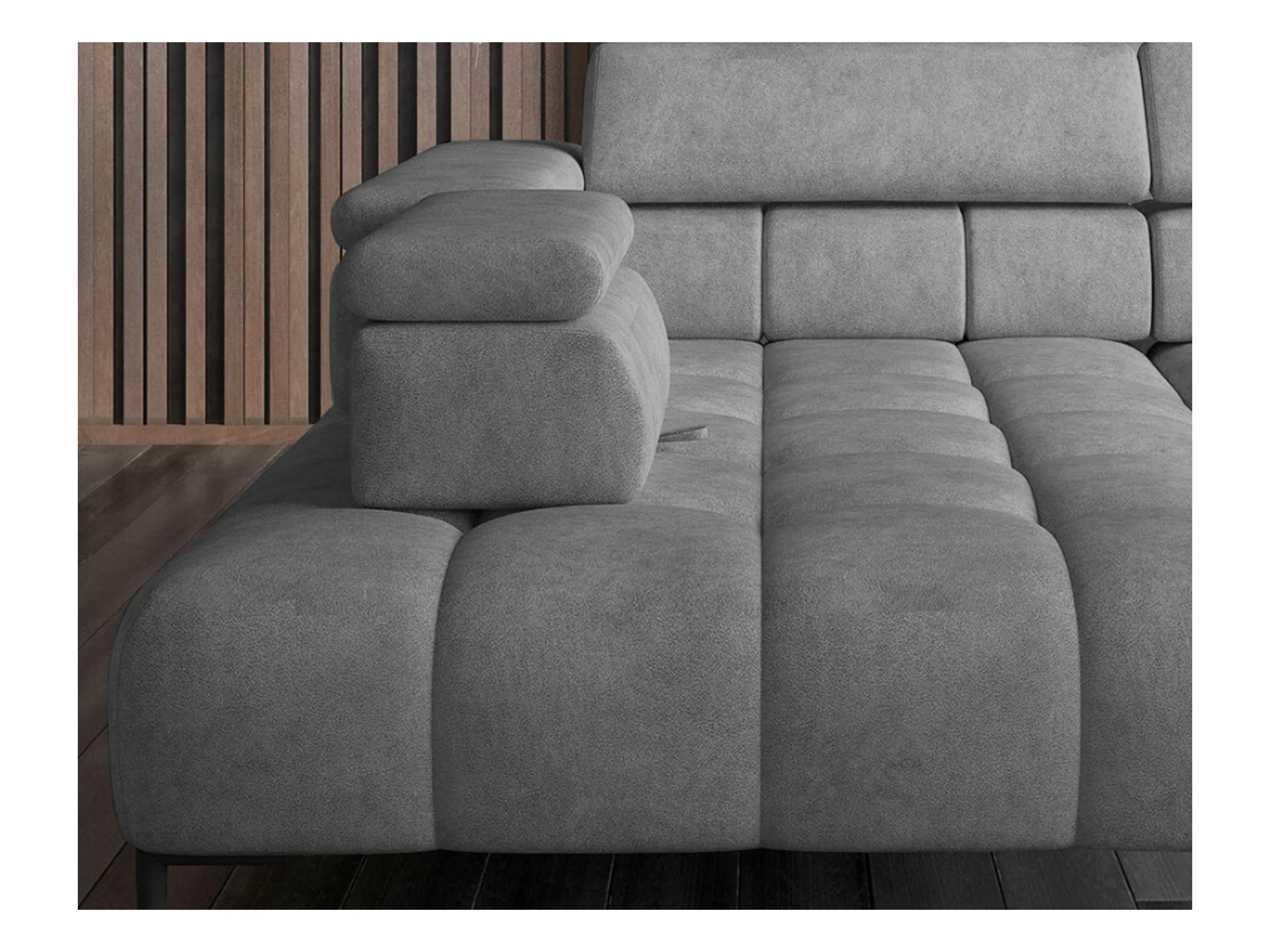 Plaza Ecksofa U-Form - Linke Seite, Schlaffunktion, Verstellbare Kopfstützen, Wellenfedersystem, Hochelastischer Schaum, 385x216 cm, Hellgrau
