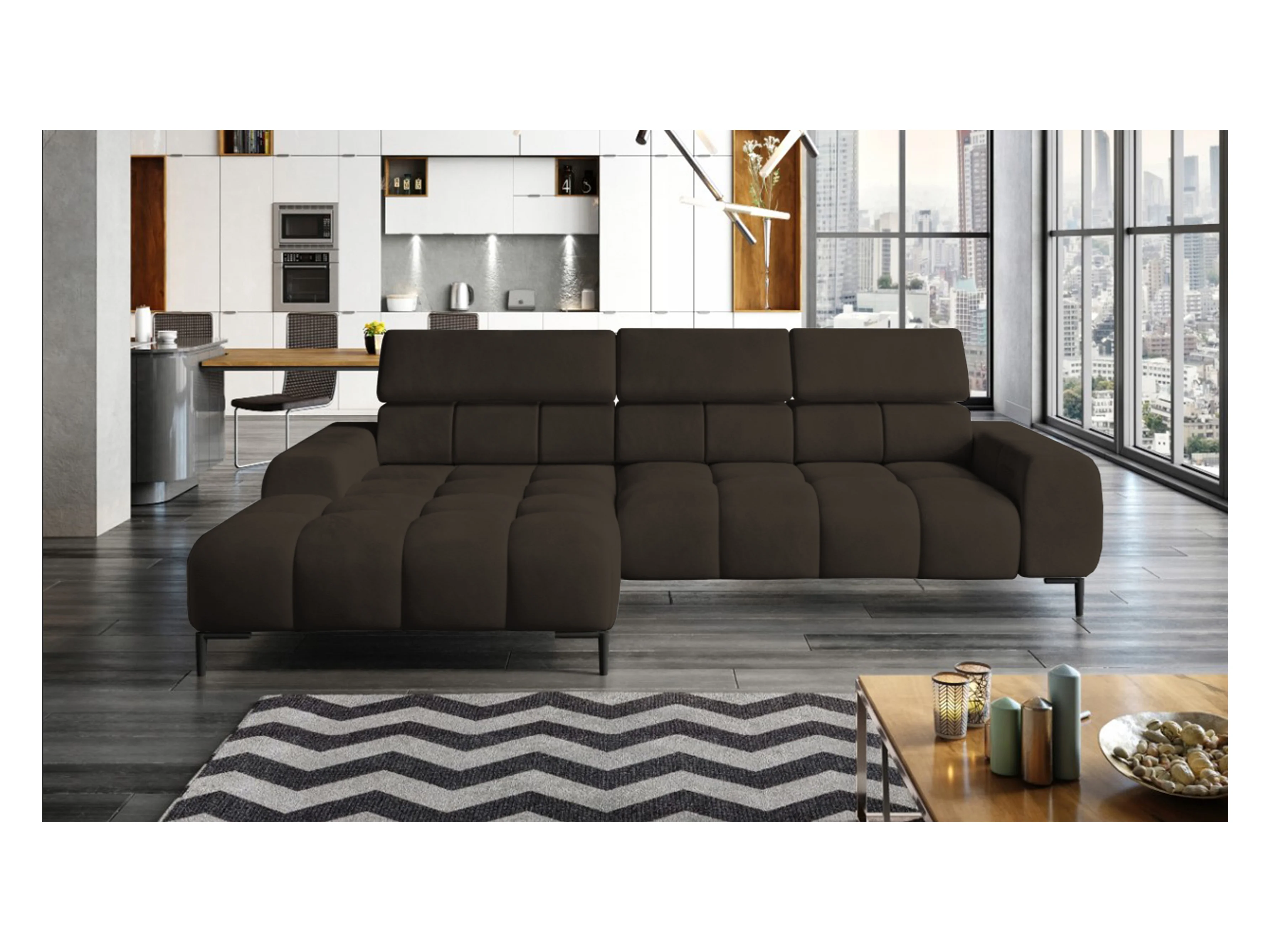 PlazaMINI Polsterecke L-Form Links, Ecksofa mit Schlaffunktion, 3-Sitzer, verstellbare Kopfstützen, Stoff: SALVADOR, 177x270x99 cm, Dunkelbraun
