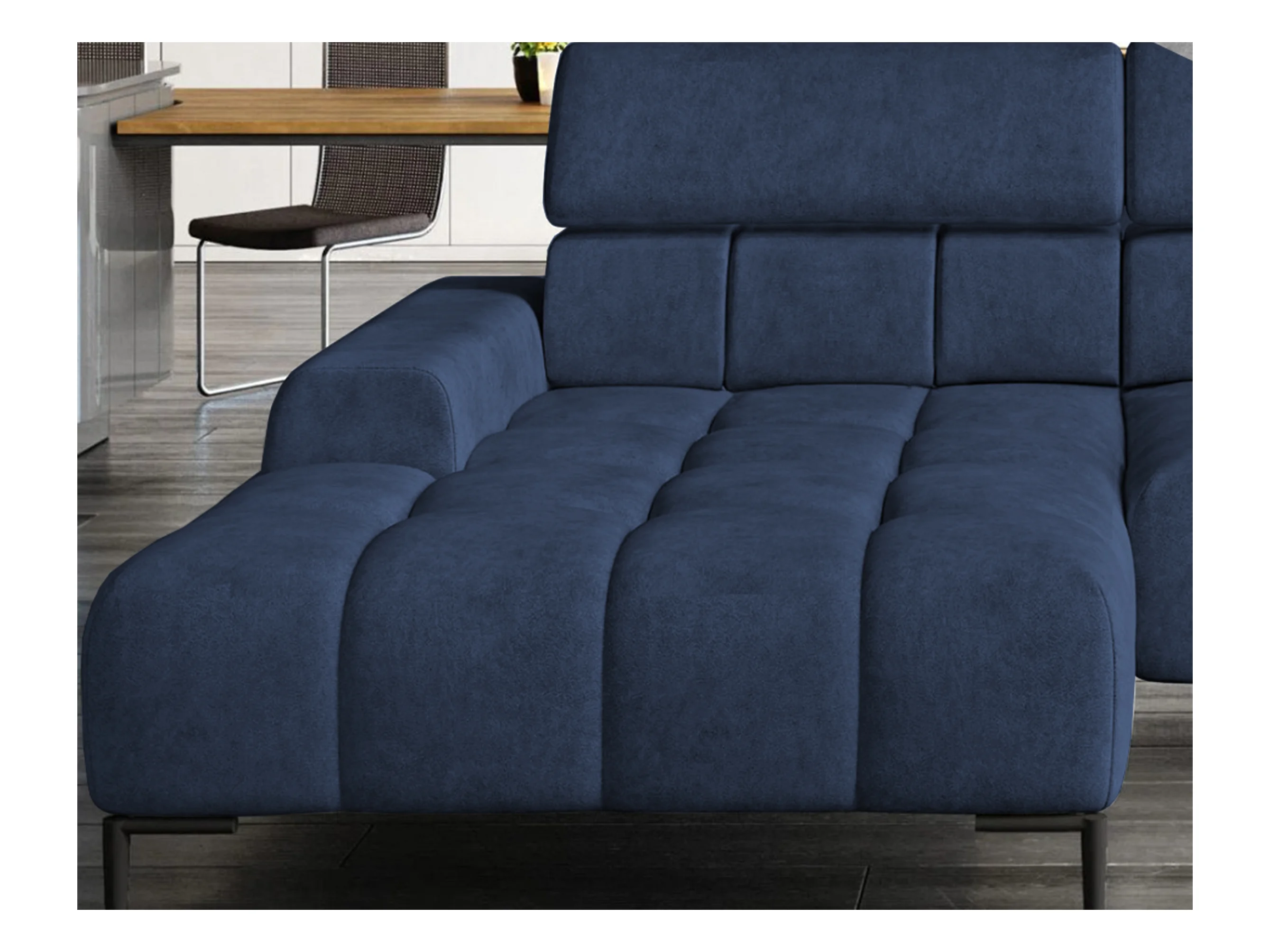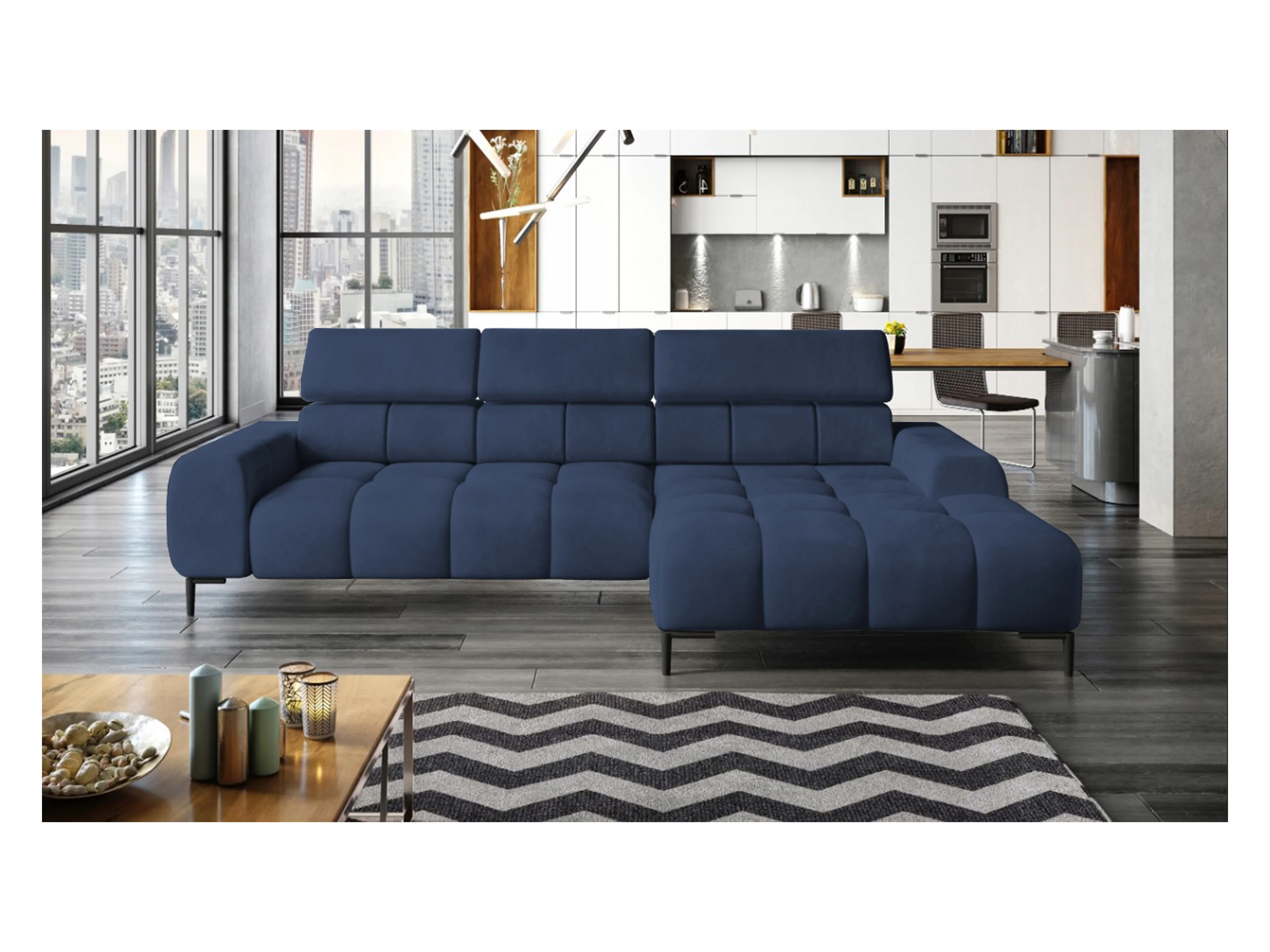 PlazaMINI Polsterecke L-Form Rechts, Ecksofa mit Schlaffunktion, 3-Sitzer, verstellbare Kopfstützen, MONOLITH, 177x270x99 cm, Blau