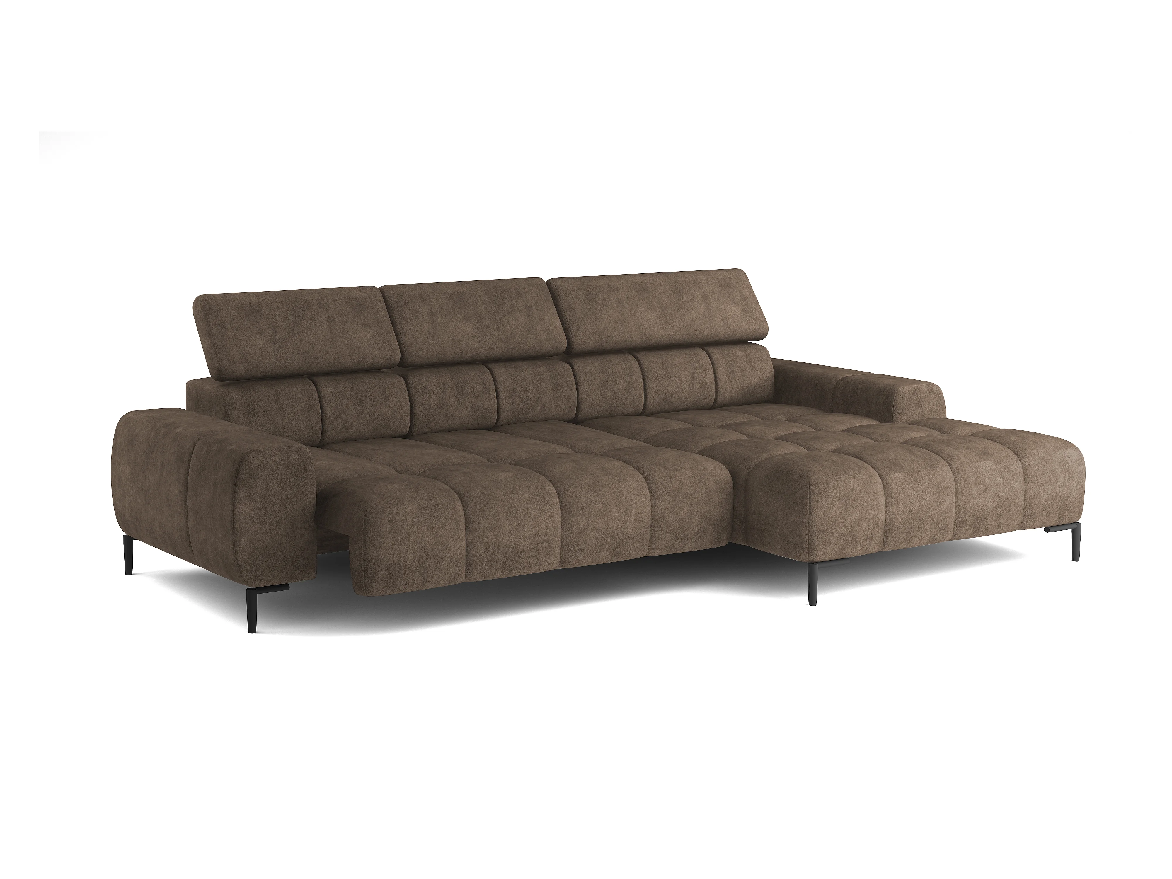 PlazaMINI Polsterecke L-Form Rechts, Ecksofa mit Schlaffunktion, 3-Sitzer, verstellbare Kopfstützen, MONOLITH, 177x270x99 cm, Braun