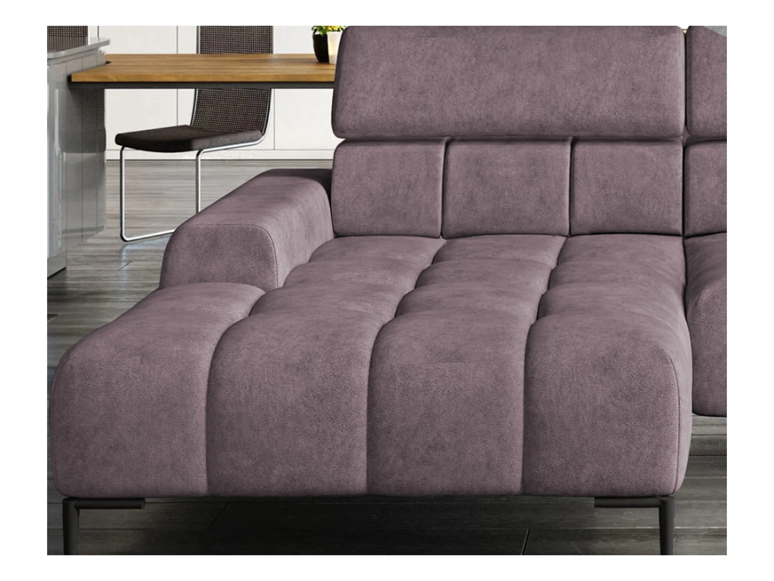 PlazaMINI Polsterecke L-Form Rechts, Ecksofa mit Schlaffunktion, 3-Sitzer, verstellbare Kopfstützen, MONOLITH, 177x270x99 cm, Puderrosa